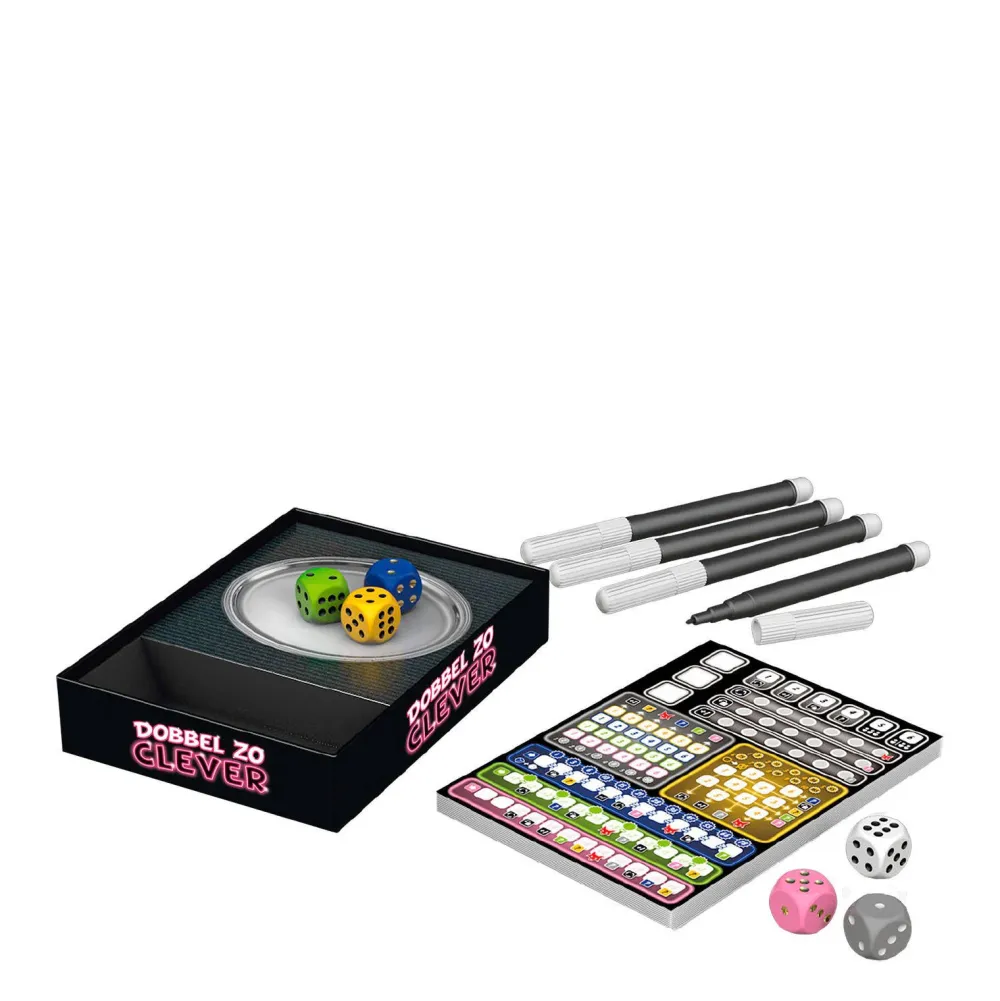 Variant Van Het Populaire, Tactische Dobbelspel De Spelregels Van Dobbel Zo Clever Zijn Gelijk Aan Die Van Het Basisspel Clever, Maar Nieuwe Kleurcategorieen Zorgen Voor Variatie En Een Andere Spelbeleving. Een Van De Spelers Dobbelt Steeds En Vult Een Van Zijn Geworpen Dobbelstenen In De Bijbehorende Categorie In. Elke Categorie Levert Op Een Andere Manier Punten Op. Hij Moet Daarbij Slim Kiezen En Goed Op De Overgebleven Dobbelstenen Letten. Hij Moet Namelijk Elke Dobbelsteen Met Een Lager Resultaat Op Het Zilveren Dienblad Aan De Andere Spelers Serveren. Die Kunnen Daardoor Wellicht Ook Belangrijke Punten Scoren. In Dit Dobbelspel Zijn Alle Spelers Voortdurend Bezig. Daardoor Is Het Tot Het Einde Razend Spannend!