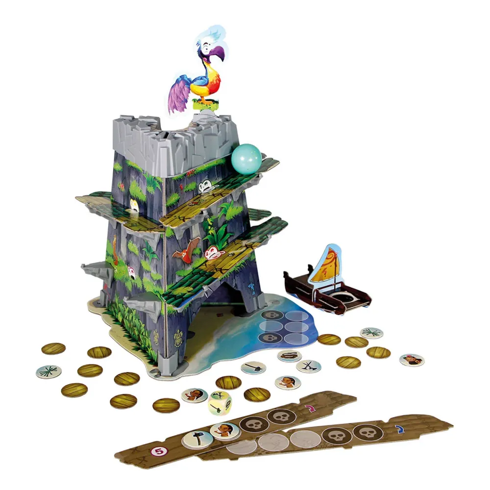 De Heilige Dodo Van De Hagulaminapitopasi-Stam Legt Ieder Jaar Op De Top Van Een Berg Een Ei. Dit Ei Rolt Tergend Langzaam Richting De Afgrond. Samen Met Je Medespelers Zet Je Alles Op Alles Om Het Ei Te Redden. Dit Doe Je Door Bruggen Te Bouwen, Die Ervoor Zorgen Dat Het Ei Veilig En Wel Naar Een Boot Aan De Voet Van De Berg Rolt. Maar Als Jullie Te Langzaam Zijn, Valt Het Ei Te Pletter! In Dit Hilarische Geheugen- En Actiespel Moet Je Samen Zo Snel Mogelijk Genoeg Fiches Vinden Om Bruggen Op De Berg Te Zetten. Dit Doe Je Door Met Een Dobbelsteen Te Rollen En Het Juiste Bijhorende Fiche Onder Alle Gedekte Fiches Te Vinden. Alleen Als Je Onthoudt Welke Fiches Waar Liggen, Kun Je Op Tijd De Bruggen In Elkaar Zetten. Dodo Is Een Race Tegen De Tijd. Het Wiebelende Ei Heeft Namelijk Een Eigen Willetje. Soms Kruipt Het Ei Met Een Slakkengang De Berg Af. En Soms Rolt Het Ei Ineens Met Een Rap Tempo Bijna Een Brug Af. Weten Jullie Het Ei Op Tijd Te Redden?