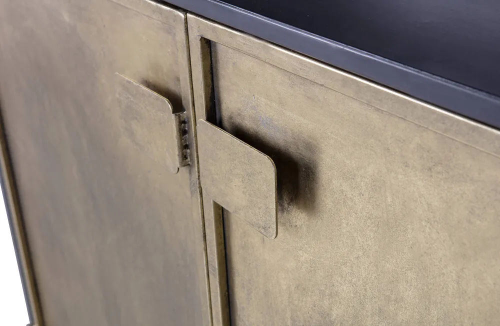 Het Metaal Uit Onze Collecties Kent Diverse Afwerkingen, Zoals: Een Poedercoating En Messing/Antique Brass. De Antique Brass Finishes Uit Onze Collecties Worden Met Een Mix Van Koper En Zink Aangebracht Op Het Metaal, Dit Kan Vervolgens Worden Afgewerkt In Een Geborstelde Uitstraling, Mat Of Glanzend. Antique Brass Geeft Een Verweerde Gouden Uitstraling Aan Het Meubel.