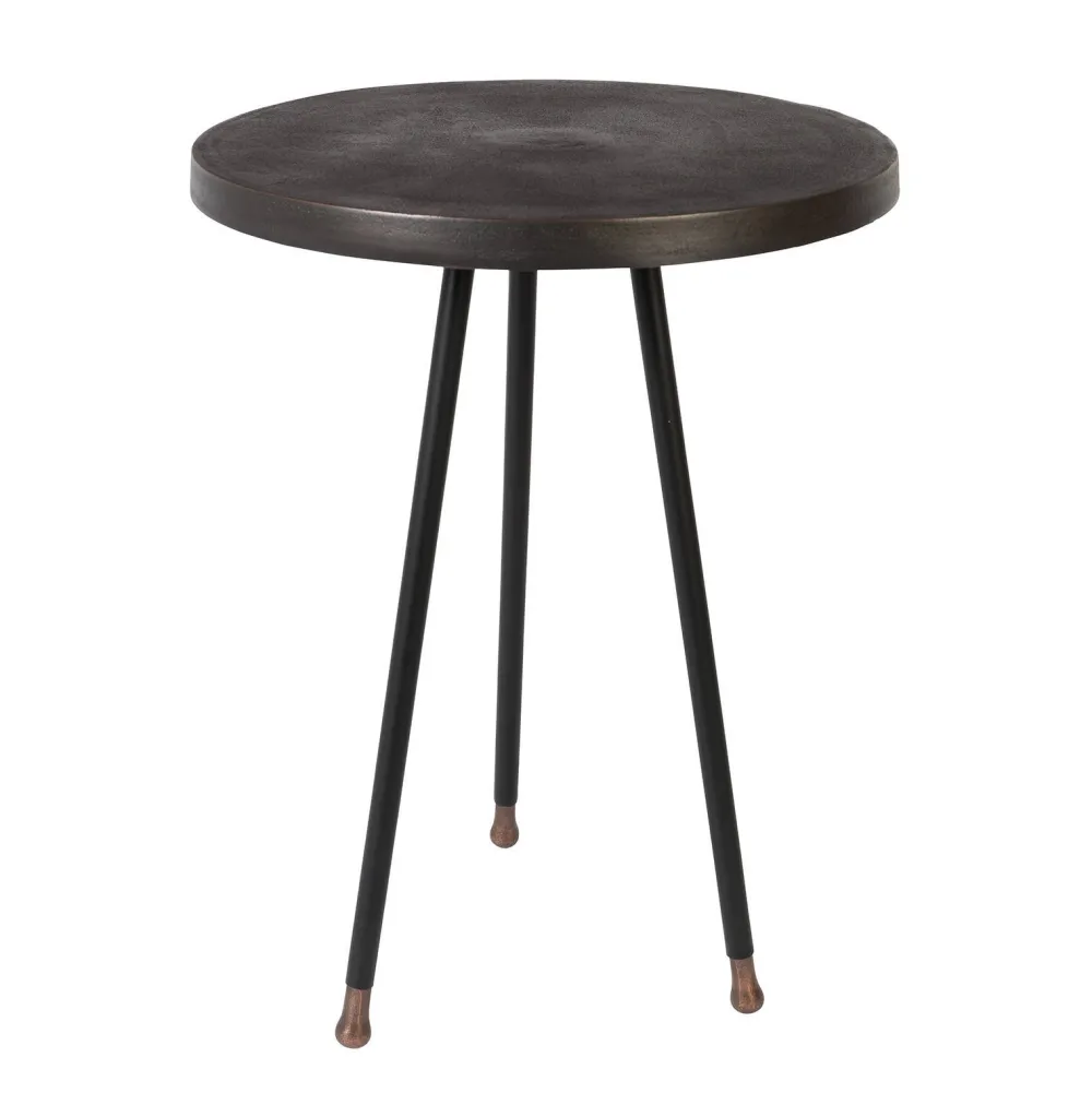 Bijzettafeltjes Alim Van Dutchbone Komen In Een Set Van Drie. Ieder Tafeltje Heeft Een Eigen Uniek Karakter. Er Is Een Messing Tafelblad, Een Metalen En Een Met Een Antieke Koper-Look. Alle Drie Hebben Ze Zwart Metalen Poten Die Mooi Afsteken Bij Het Tafelblad. De Tafeltjes Hebben Ieder Een Eigen Hoogte, Waardoor Je Ze Goed Deels Overlappend Kunt Plaatsen, Zodat Je Een Grotere Salontafel Krijgt.