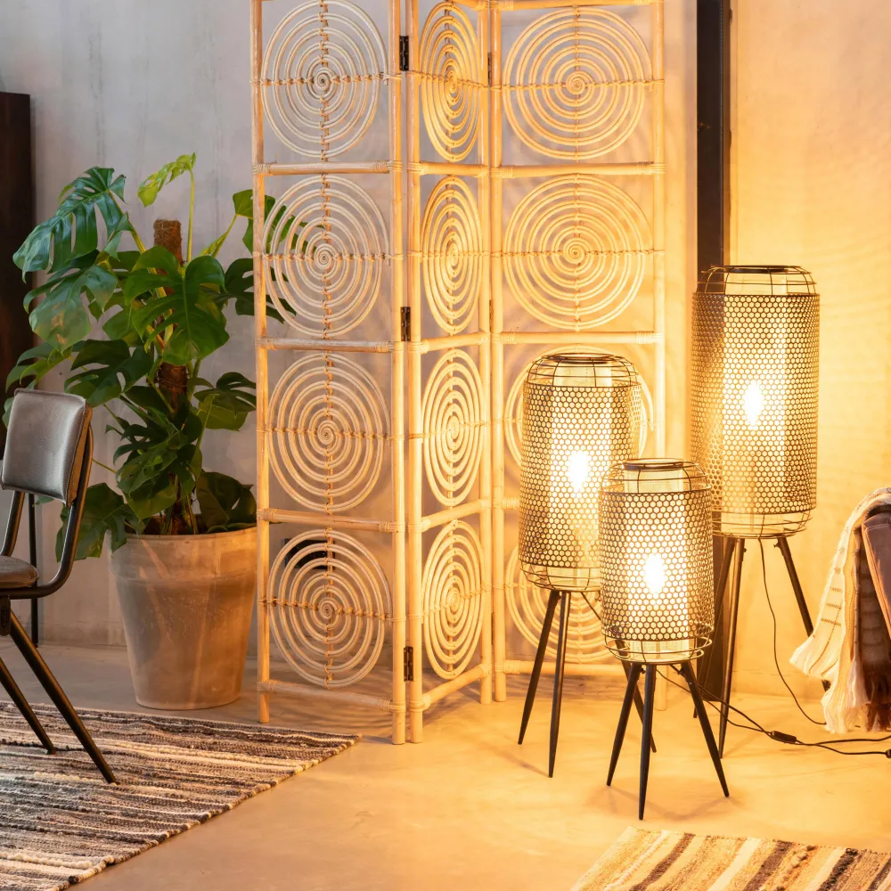 Een Helemaal Uit Metaal Opgetrokken Lamp, Dat Is Vloerlamp Archer Van Dutchbone. Deze Stoere Lamp Is Gemaakt Van Zwart, Uit Gestanst Metaal Met Een Binnenwerk Van Messingkleurig Gaas. Wat Een Bijzondere Combinatie! Industrieel En Door Het Warm Gekleurde Licht Dat Eraf Komt Toch Ook Elegant. Deze Staande Lamp Staat Op Een Driepoot En Is Er In Maar Liefst Drie Maten; M, L En Xl! Om De Look Nog Verder Door Te Kunnen Voeren Is Deze Archer Lamp Er Ook Als Hanglamp.