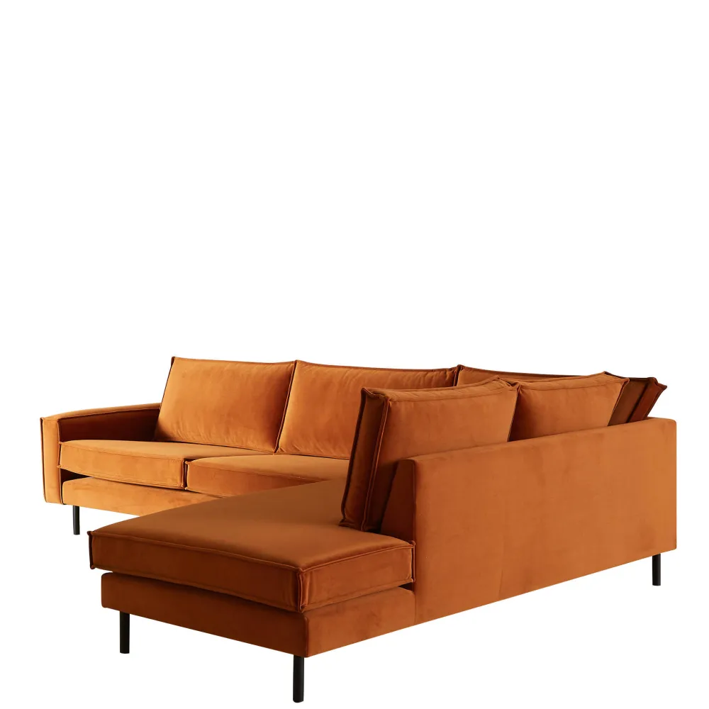 Deze Lexington Hoekbank Is Bekleed Een Heerlijk Zachte Velours Stof In Een Terracotta Kleur. De Chique Uitstraling Van Deze Stof En Terra Kleur Maken Deze Bank Een Echte Statement Piece. De Naar Buiten Gestikte Engelse Naden En Slanke Metalen Pootjes Geven Een Stoer Randje Aan Deze Chique Bank.