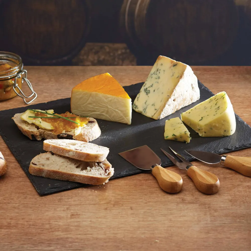 Kaasplanken Zijn De Perfecte Aanvulling Op Sociale Evenementen En Wat De Gelegenheid Ook Is, Deze Serveerplank Van Leisteen Is Perfect Voor Overheerlijke Kazen. Leisteen Is Een Geweldige Manier Om Je Kaas Op Een Lagere Temperatuur Te Houden Wanneer Hij Op Tafel Wordt Gezet. Met De Royale Afmetingen Kun Je Een Selectie Kazen Serveren, Samen Met Fruit En Antipasto’S. De Set Wordt Geleverd Met Drie Kaasmessen, Compleet Met Roestvrijstalen Lemmeten En Acaciahouten Handvatten, Waarmee Je Drie Verschillende Soorten Kazen Kunt Aanpakken: Het Beitelmes Voor Harde Kaas, Het Hartvormige Mes Voor Zachte Kaas, En De Kaasvork Kruimelige Kaas. Wil Je Dat Je Gasten Weten Welke Kaas Welke Is? Waarom Gebruik Je Geen Krijtje Om Kleine Notities Direct Op Het Leitje Te Maken? Een Fantastische Manier Om Persoonlijkheid Toe Te Voegen. De Roestvrijstalen Lemmeten Zijn Stevig En Roestbestendig, Zodat Ze Nog Vele Sociale Gelegenheden Mee Zullen Gaan. Roestvrij Staal Staat Er Om Bekend Dat Het Bestand Is Tegen De Natuurlijke Kleverigheid Van Kaas, Zodat Er Geen Geknoei Ontstaat. Acaciahout Is Een Natuurlijke Schoonheid, Met Een Rijke Nerf Die Opvalt Op Elke Eettafel. De Houten Handgrepen Geven De Set Extra Karakter. Leisteen Is Een Fantastische Optie Als Het Gaat Om Het Presenteren Van Kaas. Het Natuurlijk Koele Oppervlak Is Ideaal Voor Zuivel En Omdat Het Stevig Is, Biedt Het Ondersteuning Wanneer Je Zachte Kazen Snijdt. Dankzij Het Royaal Formaat (35 Cm X 25 Cm) Kun Je Deze Voedselveilige Serveerplank Gebruiken Voor Allerlei Heerlijke Gerechten, Zoals Antipasto, Knapperig Brood En Tapaslekkernijen. De Artesa Collectie Is Gemaakt Om Indruk Te Maken. Dit Zorgvuldig Samengestelde Assortiment Van Apparatuur Voor Het Bereiden En Serveren Van Voedsel Combineert Ambachtelijk Vakmanschap Met Een High-End Design Esthetiek.Mooi Servies Voor Elke Gelegenheid! Uniek, Trendy En Kwalitatief Hoogstaand Servies Dat Entertainen Gemakkelijk En Mooi Maakt.