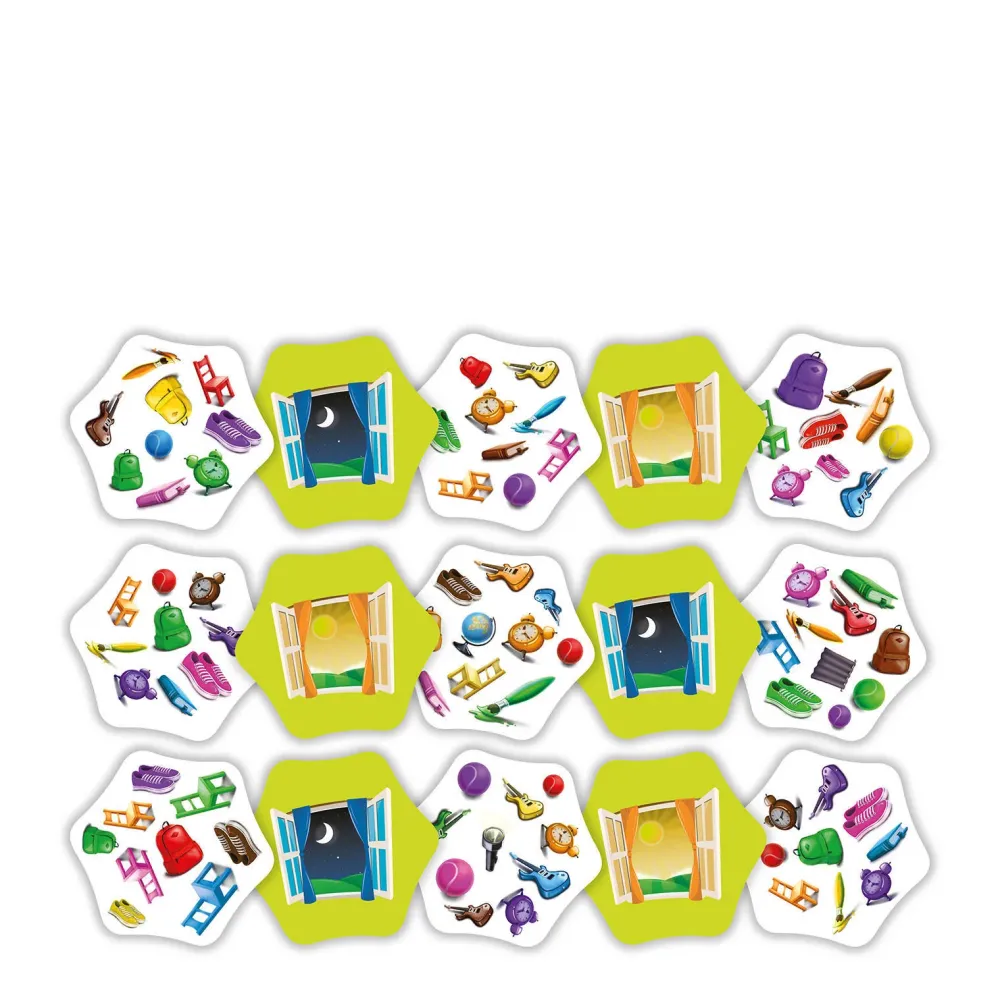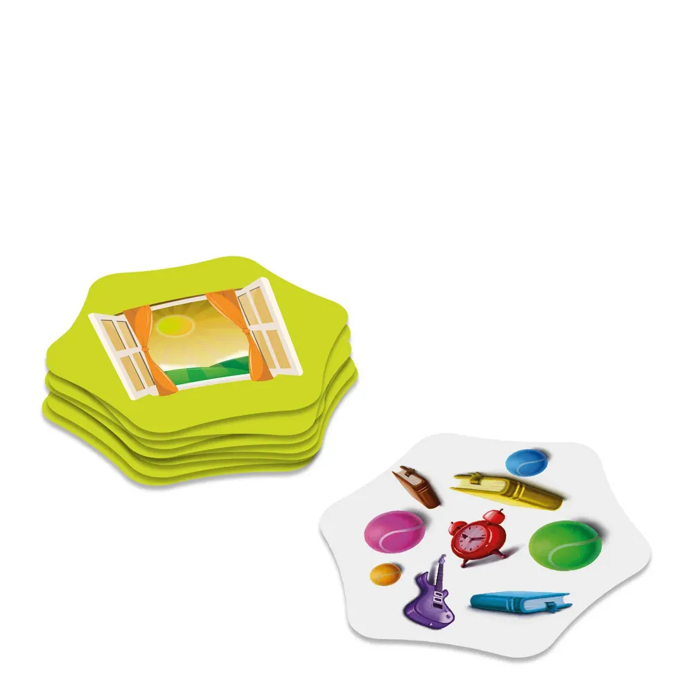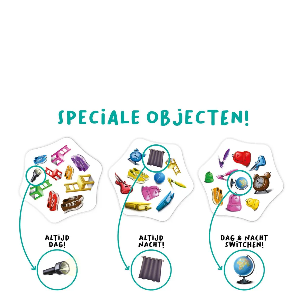 Switch It! Is Een Reactiespel Waarin Je Als Eerste De Kleur Of Het Voorwerp Probeert Te Vinden. Draai Een Kaart Om, Doorzoek De Rommelige Kamer En Probeer Als Eerste De Kleur Of Het Figuur Te Vinden Die Het Meest Voorkomt. Tijdens De Dag Kan Je Dankzij Het Zonlicht De Juiste Kleur Zien. Tijdens De Naacht, Kan Je Zonder Licht Enkel Vormen Zien En Moet Je Het Juiste Voorwerp Zoeken. Hoe Snel Kan Jij Je Focus ‘Switchen’? Elke Kaart Die Wordt Omgedraaid, Verandert De Omstandigheden Om Een Correcte Oplossing Te Vinden. Maar Let Op, Speciale Voorwerpen ‘Switchen’ Alles Nog Meer Om! Als Deze Verschijnen, Veranderen Ze De Invloed Van Dag- En Nachtkaarten. Verzamel De Meeste Kaarten En Win Het Spel! Switch It! Is Een Snel, Leuk En Makkelijk Kaartspel Voor De Hele Familie!