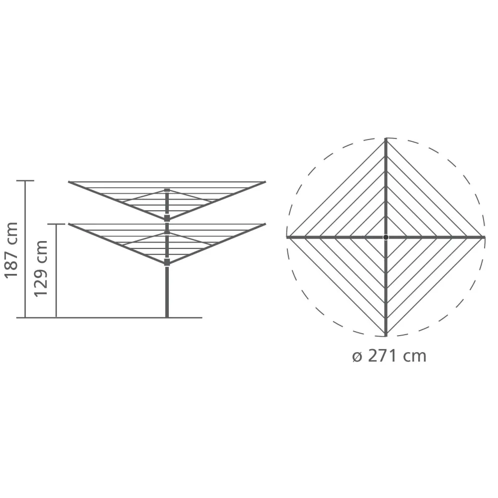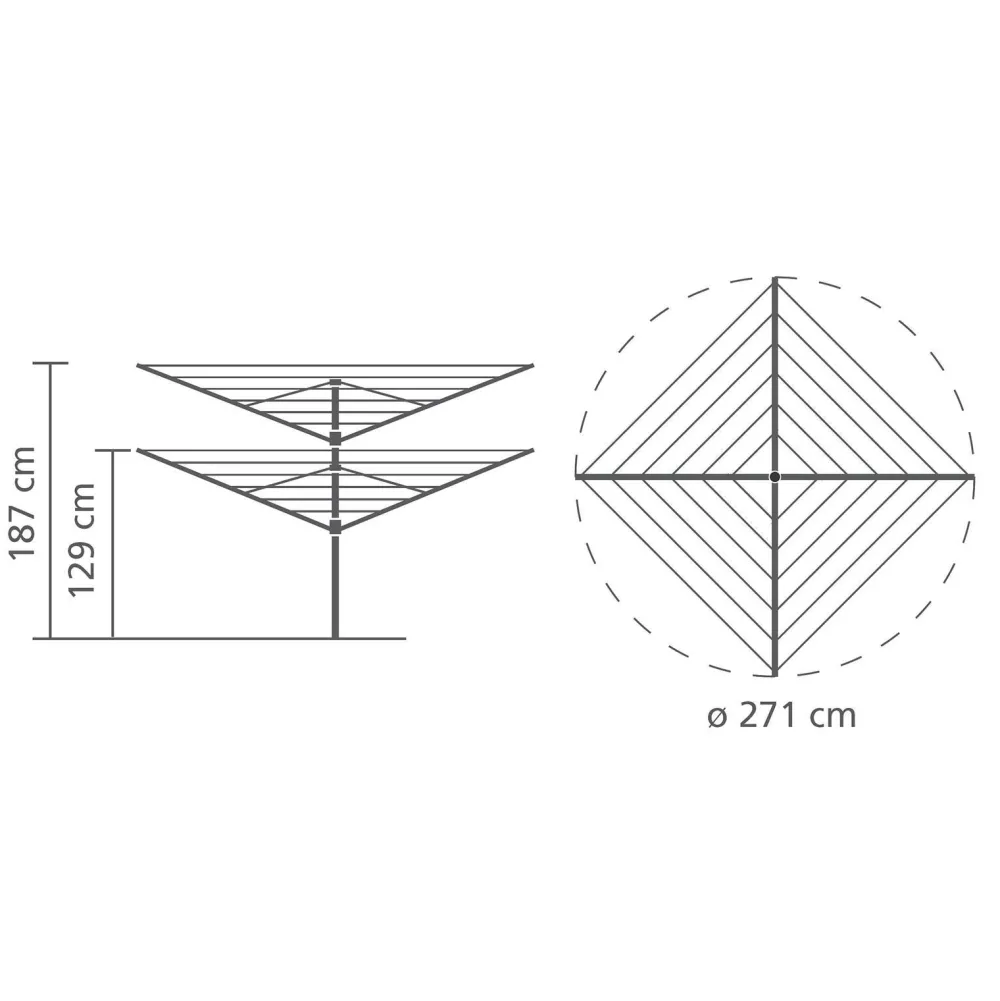 – Slim ‘Lift-O-Matic’ Systeem Om De Droogmolen Traploos In Te Stellen Op Uw Ideale Werkhoogte (Van 129 Tot 187 Cm) En Altijd Strakke Drooglijnen