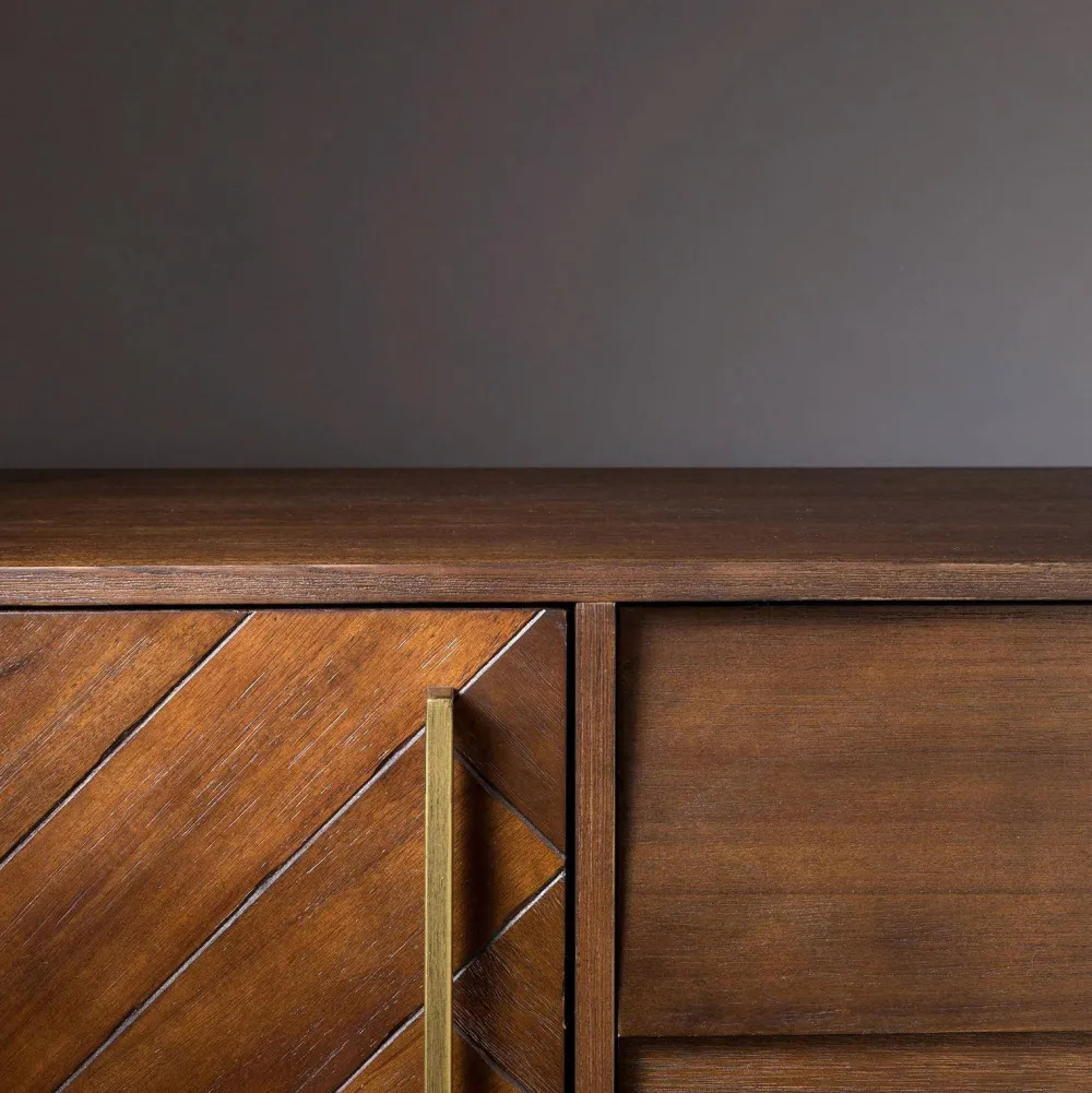 Het Dressoir Class Is Van Het Merk Dutchbone. Dit Chique Dressoir Heeft Een Uiterlijk Met Fineer Van Acaciahout. Deze Kast Heeft 2 Kastdeurtjes Met Visgraat Design. Achter De Deuren Zitten Vakken Met Elk Een Legplank. Tussen De Dichte Kastjes Zitten 2 Vakken Met Deurtjes Die Naar Binnen Openklappen. Het Elegante Onderstel En De Handgrepen Zijn Van Metaal En Hebben Een Vintage Messing Look. Het Dressoir Class Is Tevens Als Tv-Meubel Te Gebruiken.