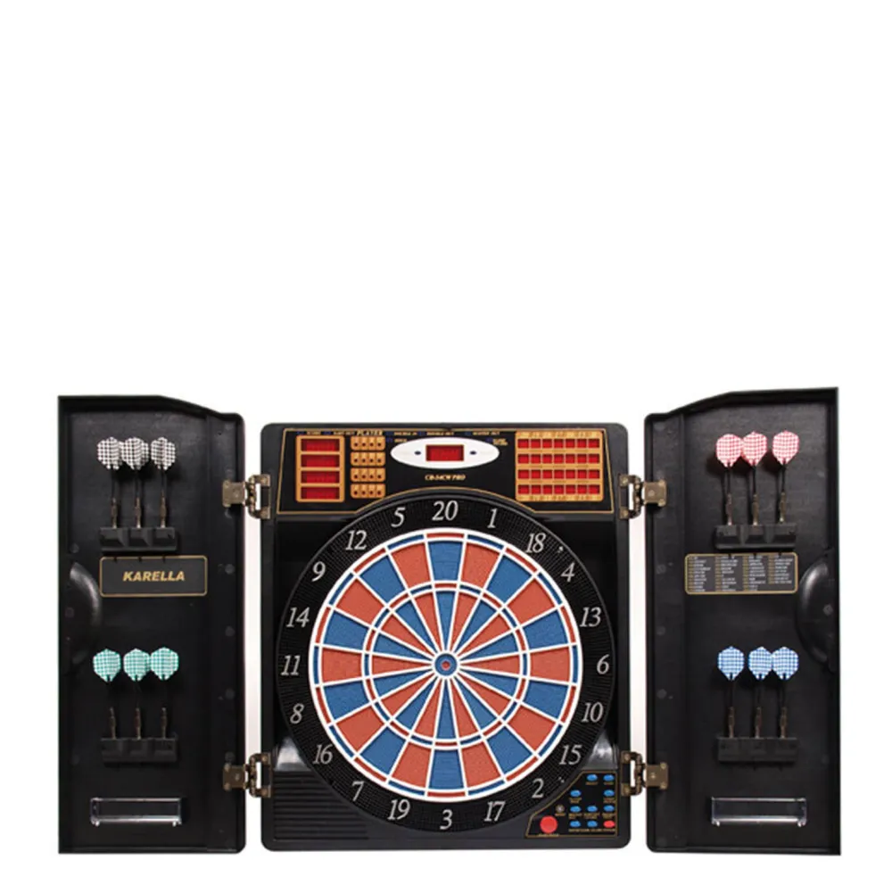 Zeer Compleet Electronisch Dartboard In Een Kabinet. Speel Maar Liefst 38 Spelvarianten Met Individueel Aanpasbare Moeilijkheidsgraad. Cricket, Point, Competitie, Sport En Casino Games Met Electronische Led Scoreboards Tot Maar Liefst 16 Spelers. Het Kan Allemaal Op De Karella. De Computergestuurde Speaker Geeft De Scores Weer Gecombineerd Met Amusante Geluidseffecten Die Het Speelplezier Verhogen. Met Deze Tournament Edition Speel Je Echt Op Niveau!