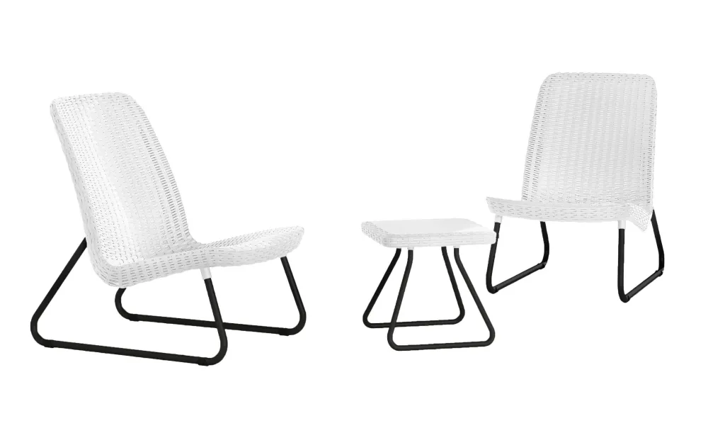 Deze Compacte Keter Rio Loungeset Past In Elke Tuin Of Op Ieder Balkon En Is Een Uitstekende Set Om Op De Zwoele Zomeravonden Heerlijk In Te Ontspannen. Het Achterover Hellende Zitvlak Zorgt Namelijk Voor Een Goed Zitcomfort. Het Loungesetje Bestaat Uit Twee Stoelen En Een Kleine Tafel En Is Snel En Eenvoudig Te Monteren. De Set Is Voorzien Van Een Modern Wicker Design. Het Kunststof Materiaal Zorgt Ervoor Dat De Set Onderhoudsvrij, Weerbestendig En Ontzettend Duurzaam Is. Deze Set Is Compact En Daarom Ideaal Voor Kleine Terrassen En Tuinen. U Kunt De Rio Patio Balkonset Dus Het Gehele Jaar Buiten Laten Staan.