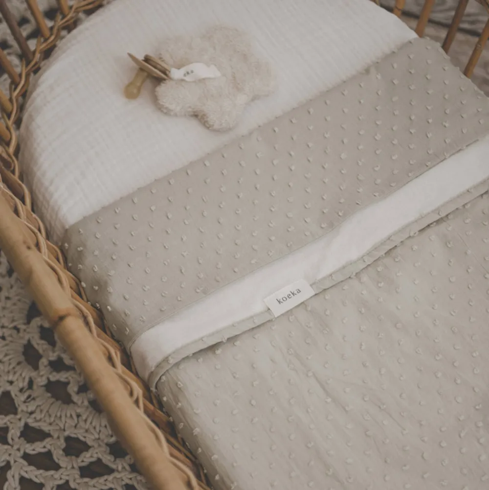 De Koeka Ledikantlakens Zijn Gemaakt Van 100% Katoen En Voelen Daarmee Lekker Fris En Crispy Aan. Alle Lakentjes Combineren Perfect Met De Verschillende Koeka Ledikantdekens. Door De Kleine Details Op De Koeka Lakens Kan Je Het Ledikant Van Je Kindje Naar Eigen Smaak Stylen. Kies Verschillende Lakens En Geef Je Babykamer Snel Een Andere Look! Speels En Romantisch; De Subtiel Tone-In-Tone Geborduurde Bolletjes Creeren De Uitstraling Van Deze Stof. Napa Is Zacht En Luchtig En Gemaakt Van 100% Katoen. De Afmeting Van Dit Product Is 140X110Cm.