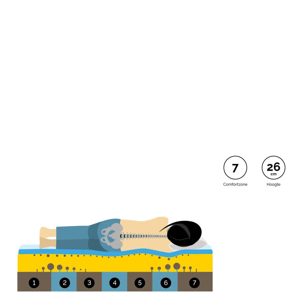 Op Dit Matras Ervaar Je De Beste Ondersteuning En Drukverdeling Voor Je Lichaam, Zodat Je Iedere Dag Soepel Opstaat! Afhankelijk Van Je Gewicht En Zwaartepunt Verdeelt Het Matras De Druk Op Een Optimale Manier En Past Het Zich Perfect Aan Naar De Contouren Van Je Lichaam. Het Zorgt Voor Extra Veerkracht En Wendbaarheid. Het Laat Lucht, Warmte En Vocht Beter Door, Wat Zorgt Voor Nog Meer Ventilatie En Een Goede Vochtafvoer. Hierdoor Sta Jij Iedere Ochtend Heerlijk Fris Op! Het Matras Stemt Zich Perfect Af Op Je Lichaam, Doordat De Binnenkant Bestaat Uit Een Open Celstructuur. Jouw Lichaamswarmte Blijft Perfect In Balans, Dit Zorgt Voor Een Aangenaam Slaapklimaat. Welke Beweging Je Ook Maakt Of Houding Je Aanneemt, Dit Matras Past Zich Perfect Aan. Erg Populair Bij Topsporters En Fysiotherapeuten, Omdat De Ondersteuning Van Dit Matras Resulteert In En Beter Herstel Van Spieren En Gewrichten.