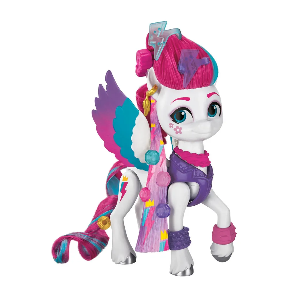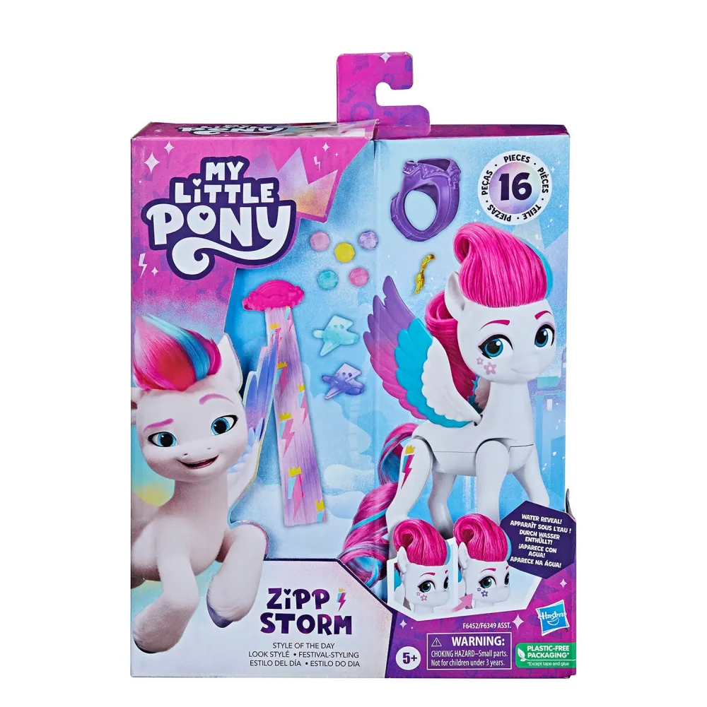 Geef Je Pony Spetterende Haarstijlen, Coole Outfits En Leuke Accessoires Met My Little Pony Style Of The Day Zipp Storm! Zipp Is Een Rebelse Pegasus-Prinses Die Spannende Betovering Ontdekt In De Bridlewoodstock-Special Van My Little Pony: Make Your Mark. Bij Deze My Little Pony-Figuur Horen Alle Modeaccessoires Die Nodig Zijn Om Je Klaar Te Maken Voor Een Muziekfestival. Kinderen Kunnen Zipps Manen En Staart Stijlen Met De Haarextensie En Clips, Haar Outfit Versieren Met Sieraden En Een Popsterrenvest, En Met Koud Water De Verf Op Haar Gezicht Van Kleur Laten Veranderen! Dit My Little Pony-Speelgoed Met Vleugels Is 14 Cm Groot En Heeft Beweegbare Armen En Benen. Bij De Haarstylingpop Hoort Een Kam Om De Kleurrijke Manen En Staart Te Kammen. My Little Pony-Modepoppen Zijn Een Ideaal Geschenk Voor Meisjes En Jongens! Ontdek Ook Ander Style Of The Day-Eenhoornspeelgoed, Pegasus-Speelgoed En Andere My Little Pony-Speelfiguren Voor Jongens En Meisjes Vanaf 5 Jaar (Elk Afzonderlijk Verkrijgbaar. Zolang De Voorraad Strekt). My Little Pony En Alle Gerelateerde Personages Zijn Handelsmerken Van Hasbro.