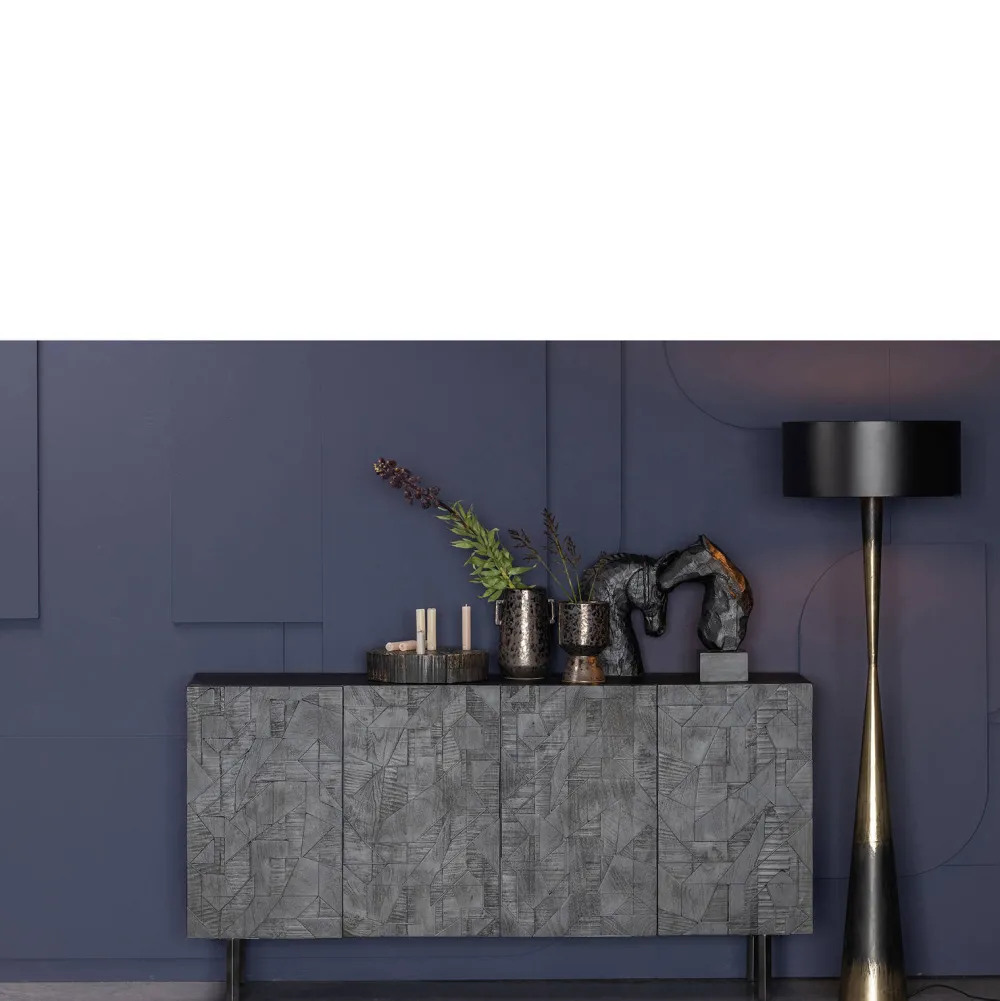 Bepurehome Counter Dressoir 160X83X40 Cm (Bxhxd) Met Dit Dressoir Plaats Je Een Echte Eyecatcher In Huis! Het Opvallende Houtsnijwerk Op De Deuren Trekt De Aandacht En Blijft Boeien. Elk Dressoir Heeft Zijn Eigen Houtstructuur In Het Snijwerk, Wat Elk Item Uniek Maakt. Het Counter Dressoir Komt Uit De Collectie Van Het Nederlandse Merk Bepurehome En Is Vervaardigd Uit Robuust Mangohout. Achter De Vier Deuren Schuilt Een Zee Van Opbergruimte. Deze Ruimte Is Opgedeeld Door Twee Horizontale Planken, Deze Planken Kunnen Verwijderd Worden Maar Is Niet Verstelbaar. Het Dressoir Heeft Een Totale Hoogte Van 83 Cm, Is 160 Cm Breed En 40 Cm Diep. De Metalen Poten Hebben Een Hoogte Van 18 Cm. Het Metalen Frame Is 2X2 Cm Dik. De Vier Deuren Met Houtsnijwerk Zijn 65 Cm Hoog, 39,5 Cm Breed En 2 Cm Dik. De Deurtjes Beschikken Over Een Softclose Systeem. De Inhoud Van De Kast Is In Twee Grote Vakken Verdeeld Met Elk Een 78 Cm Brede Legplank. Deze Legplank Heeft Een Diepte Van 33,5 Cm, Aan De Achterzijde Is Een Kier Van 1,5 Cm Dus Kleine Items Kunnen Op De Onderste Plank Belanden. De Open Vakken Hebben In Een Inhoud Van (Hxbxd) 30X78X35 Cm. Onder De Poten Zitten Levelers, Zodat Het Dressoir Waterpas Gesteld Kan Worden. Het Dressoir Weegt 48 Kg. Het Draaggewicht Van Counter Is 35-40 Kg. Elke Plank Kan Maximaal Belast Worden Met 10 Kg.