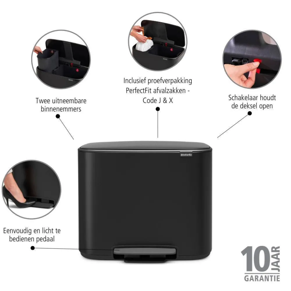 Op Zoek Naar Een Mooie Oplossing Om Thuis Afval Te Scheiden? Deze Brabantia Bo Pedaalemmer Van 23 + 11 Liter Heeft Alles Wat Je Nodig Hebt. Zoals Twee Uitneembare Binnenemmers, Een Ruimtebesparend Ontwerp En Een Beschermende Antislip Onderkant Om Haar Stabiel Te Houden. Het Deksel Opent Hygienisch Bij Een Tikje Van Je Voet En Door Het Slimme Scharnierontwerp Sluit Het Deksel Langzaam. Een Afvalemmer Om Van Te Houden.