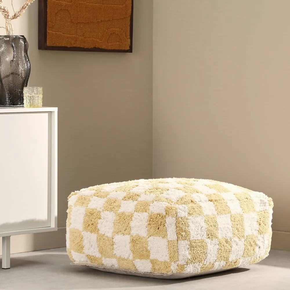 De Hoes Van De Vierkante Checker Poef Is Gemaakt Van Een Stevig Katoen Met Een Getuft Hokjes Patroon. De Vulling Is Heerlijk Zacht En Comfortabel. De Rits Aan De Onderzijde Zorgt Ervoor Dat Je De Hoes Kunt Uitwassen! Wel Zo Handig Met Kinderen.