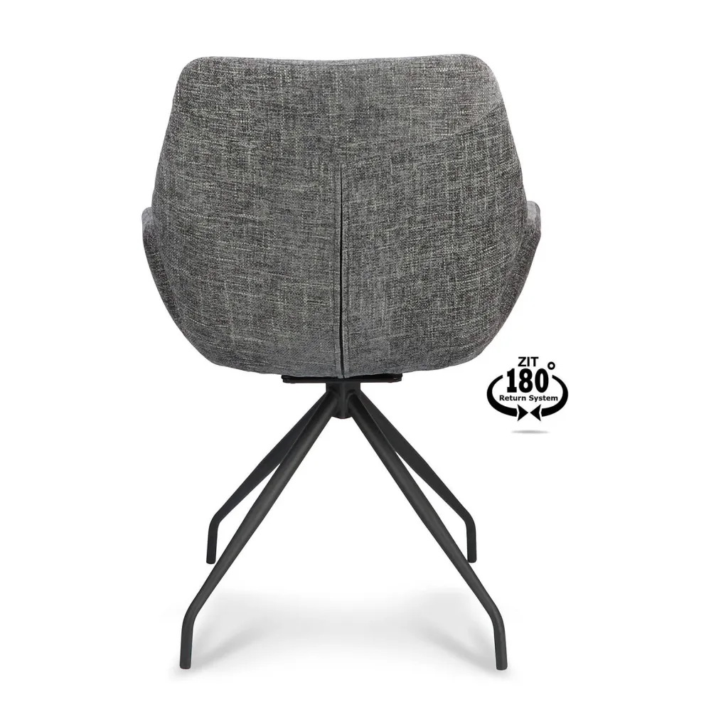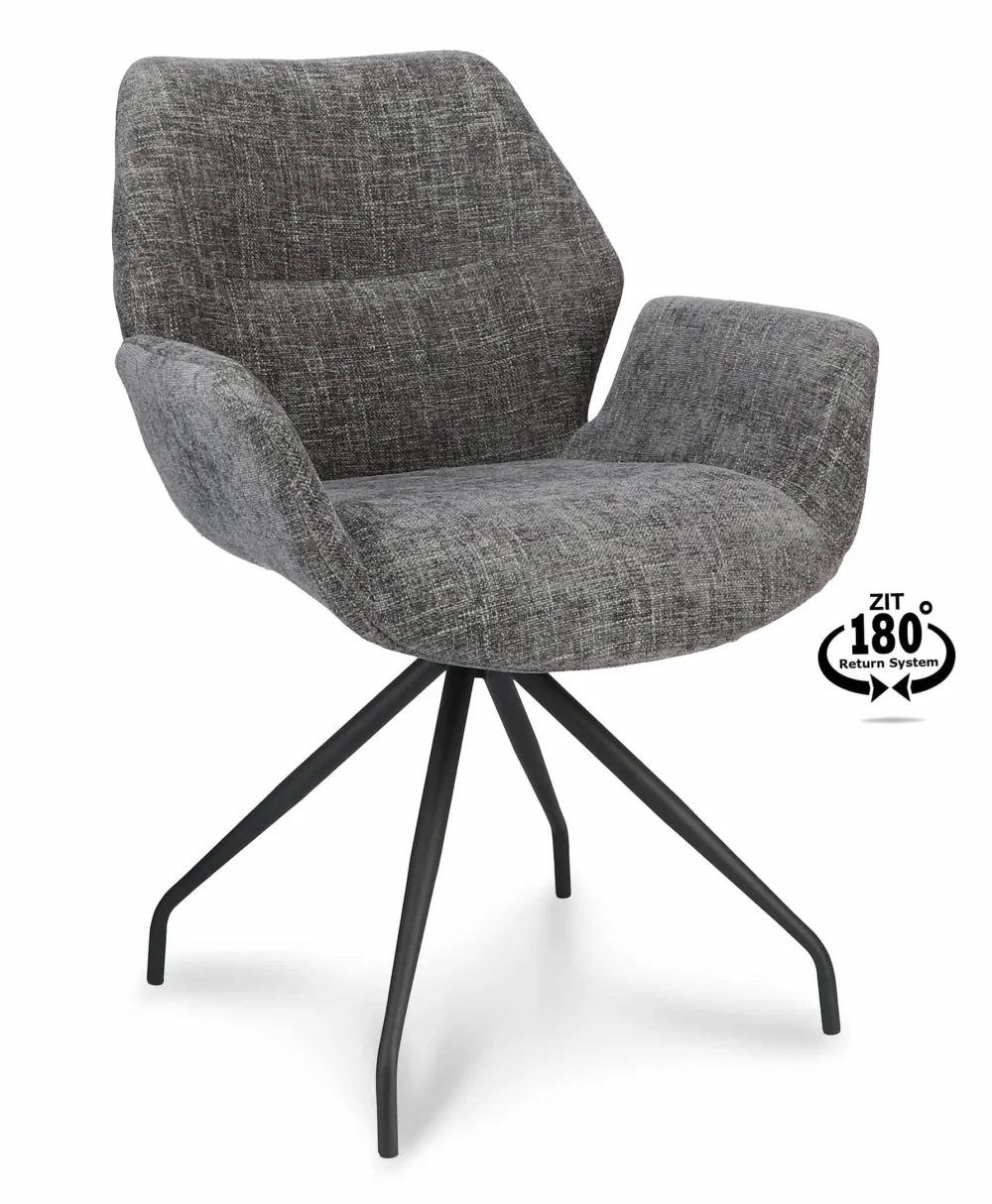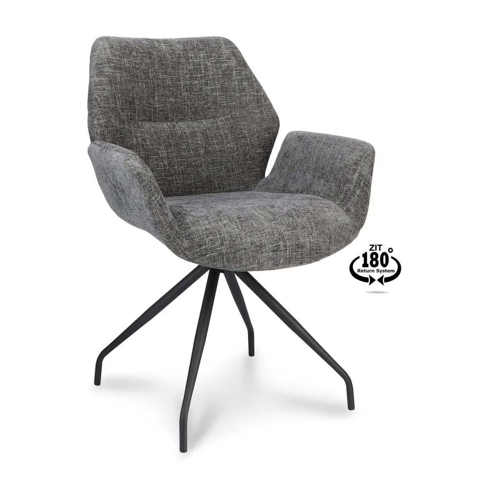 Maak Kennis Met Eetkamerstoel Vara Uit De Wehkamp Home Collectie. De Vara Eetkamerstoel Is De Perfecte Combinatie Van Design En Comfort En Past In Vele Interieurs Thuis! De Kuip Heeft Een Luxe Uitstraling En Royale Zitting Die Je Omarmd. Deze Is Bekleed Met Een Combinatie Van Leder En Polyester In De Kleur Donkergrijs. De Kuip Wordt Gedragen Door Een Zwart Metalen Spinpoot. Tevens Is De Vara Eetkamerstoel Voorzien Van Een 180 Graden Draai-Systeem. Zo Kun Je Gemakkelijk In- En Uitstappen Aan Je Eettafel. De Terugdraai Functie Zorgt Ervoor Dat De Kuip Weer Netjes Terugdraaid Naar De Originele Stand. De Vara Is Eenvoudig Te Monteren En Verkrijgbaar In Verschillende Kleur. Dus Je Kunt De Stoelen Ook Combineren Met Elkaar Voor Een Speels Effect!