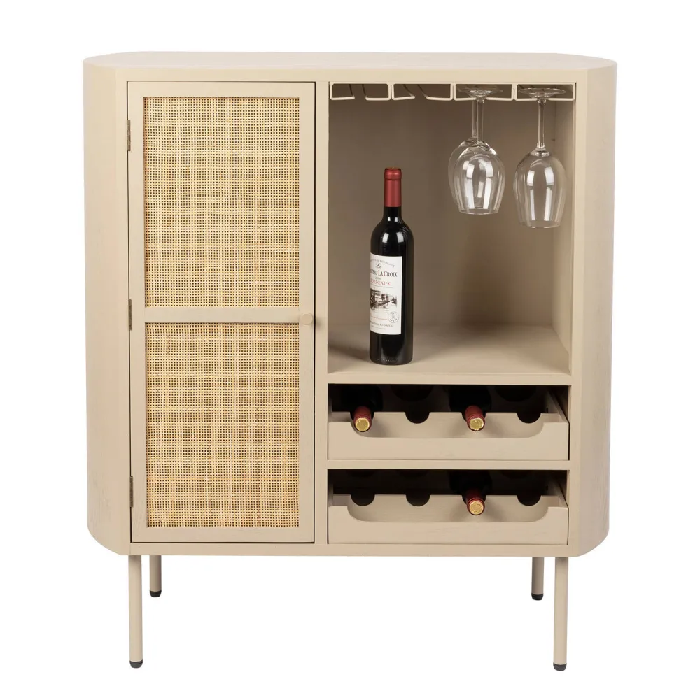 Voor De Echte Bourgondiers Onder Ons! De Sfeervolle Amaya Wijnkast Past Binnen De Japandi Stijl En Past In Ieder Interieur. Amaya Is Gemaakt Van Hout En Heeft Een Gevlochten Rattan Deurtje Voor Handige Opberggruimte. De Lichte Kleuren En Ronde Vormen Zorgen Voor Een Rustige, Serene Uitstraling. De Wijnkast Biedt Tevens Ruimte Voor Jouw Wijnflessen En Je Kunt Gemakkelijk Je Glazen Ophangen In Een Van De Vier Rijen.