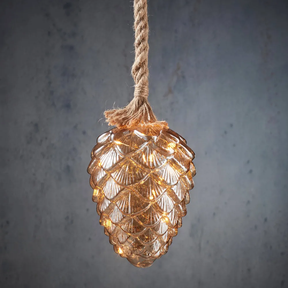 Warme En Sfeervolle Kerstverlichting Met Een Natuurlijke Touch: Deze Glazen Dennenappel Aan Een Touw Van Luca Lighting Maakt Het Direct Gezellig In Huis. In De Lichtbol Zitten Namelijk 15 Led Lampjes Die Een Warm Licht Verspreiden. Daarnaast Heeft Het Glas Een Lichtbruine Kleur, Waardoor Het Geheel Nog Warmer En Gezelliger Wordt. De Verlichting Kan Worden Ingesteld Met Een Timer En Werkt Op Batterijen. Heb Jij Er Al Een Mooie Plek Voor Gevonden? De Verlichte Dennenappel Heeft Een Diameter Van 15 Cm En Is Inclusief Het Touw 95 Cm Lang. Leuk Om Te Combineren Met Andere Varianten Uit De Collectie!