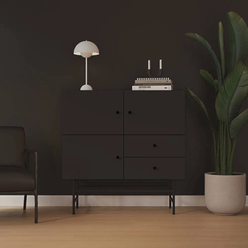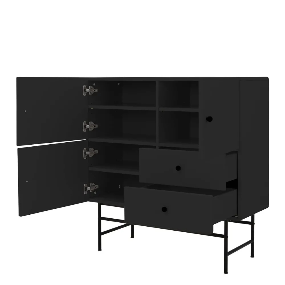 Opbergkast Cocktail Behoort Tot Het Merk Tenzo. De Opbergkast Heeft Drie Deuren En Tweede Lades Met Soft Close Systeem. Ideaal Dus! Ook De Achterkant Van Het Meubel En De Zijkanten Van De Lades Zijn Gelakt In Dezelfde Kleur. Zo Ziet Opbergkast Cocktail Er Goed Uit Vanuit Elke Hoek. Het Onderstel En De Knoppen Zijn Gelakt In Mat Zwart. Wil Je Voor De Volledige Cocktail Look Gaan? Bekijk Dan Ook Eens Het Dressoir Cocktail. De Hele Serie Is Verkrijgbaar In Drie Verschillende Kleuren.