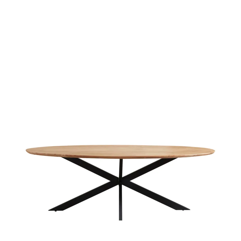 Wil Je Eens Iets Anders Dan Een Rechthoekige Of Ronde Tafel? Ga Dan Voor De Aemon Eetkamertafel Van Nous Living. Het Ovalen Tafelblad Oogt Minimalistisch En Ruimtelijk. En Toch Kun Je Met Gemak Met 6 Tot 8 Personen Plaats Nemen Aan Deze Prachtige Tafel. Het Blad Is Gemaakt Van Acacia Hout Met Zichtbare Mooie Hout Lijnen. Dit Maakt De Aemon Levendig En Speels. Het Blad Wordt Gedragen Door Een Metalen Spinpoot In De Kleur Zwart. Hierdoor Is De Eetkamertafel Tijdloos En Gemakkelijk Te Combineren Met Verschillende Stijlen Eetkamerstoelen. Dus Heb Je Een Moderne, Klassieke Of Scandinavische Stijl? De Aemon Past Overal Bij!