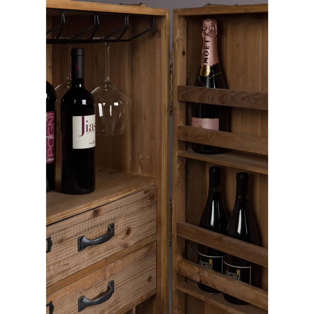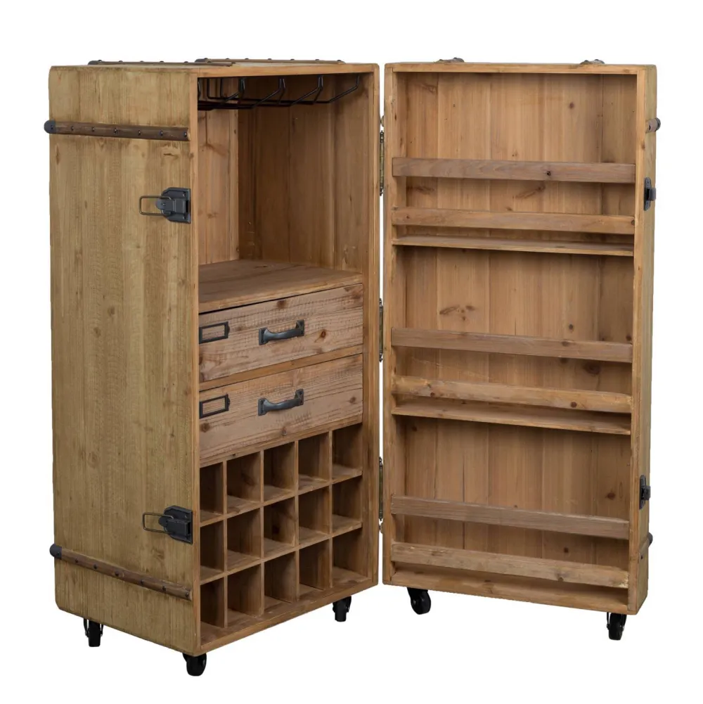 De Lico Drankkast Is Gemaakt Van Massief Sparrenhout Met Een Vintage Afwerking. De Donkere Ijzeren Details Voegen Een Stoere Touch Toe. Door De 6 Wieltjes Onderaan De Kast Is Deze Gemakkelijk Te Verplaatsen.