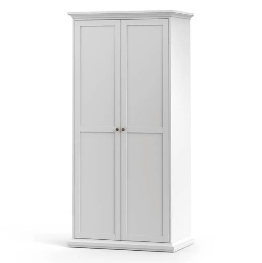 De Witte 2-Deurs Kledingkast Paris Heeft Een Landelijk, Romantische Uitstraling En Biedt Veel Ruimte Aan Je Garderobe. De Kastruimte Achter De Eerste Deur Bestaat Het Hanggedeelte Met Een Roede Met Daarboven Een Legplank.