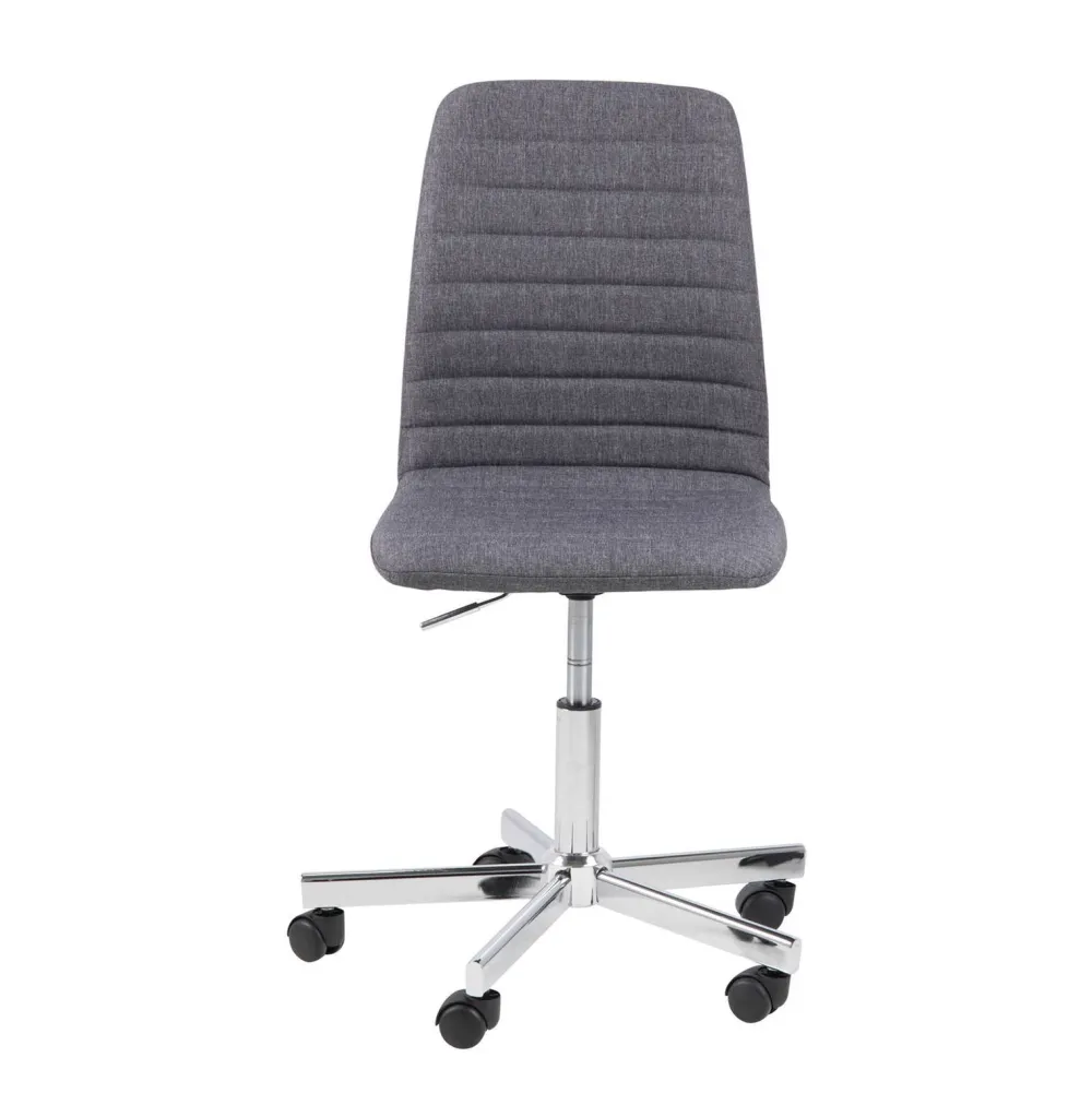 De Grijze Bureaustoel Renata Heeft Een Hoogwaardige Stoffen Bekleding Met Op De Rugleuning Horizontaal Ingestikte Naden, Dat Geeft De Bureaustoel Een Stoere Uitstraling. De Stoel Staat Op Een Chromen Onderstel. Doordat Het Onderstel 5 Wieltjes Heeft Kan Je Je Zittend Goed Verplaatsen. De Stoel Is In Hoogte Verstelbaar, Zodat Je Altijd De Juiste Zithoogte Gemakkelijk Kan Bepalen En De Stoel Dus Voor Meerdere Personen Te Gebruiken Is.