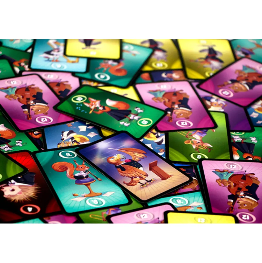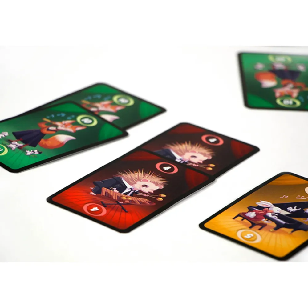De Spelers Zijn Beroemde Dirigenten, Die Voortdurend Op Zoek Zijn Naar Talent. Ze Hebben Echter Sterke Voorkeuren Wat Betreft De Omvang Van Hun Orkest. Ze Willen Uitsluitend Solisten Of Kwartetten Dirigeren. Elke Beurt Neemt Een Speler Een Muzikantenkaart Van De Gedekte Stapel, Die Hij Naast Een Van De Dirigentkaarten Legt, Of Hij Neemt Een Dirigentkaart Inclusief De Daarbij Gelegde Muzikantenkaarten En Legt Deze Voor Zich Neer. In Het Laatste Geval Is De Ronde Voor Hem Voorbij. Aan Het Einde Van Het Spel Leveren Uitsluitend Solisten En Setjes Van 4 Muzikanten Met Hetzelfde Nummer Punten Op. Wie Aan Het Einde Van Het Spel De Meeste Punten Heeft, Wint Het Spel.