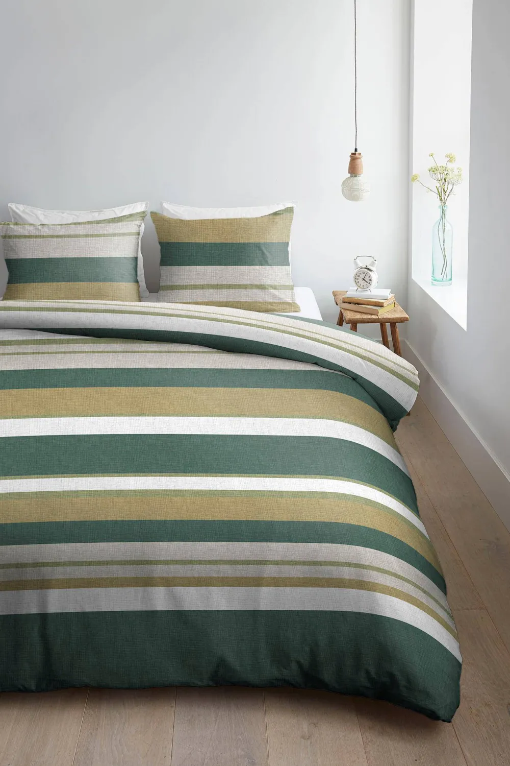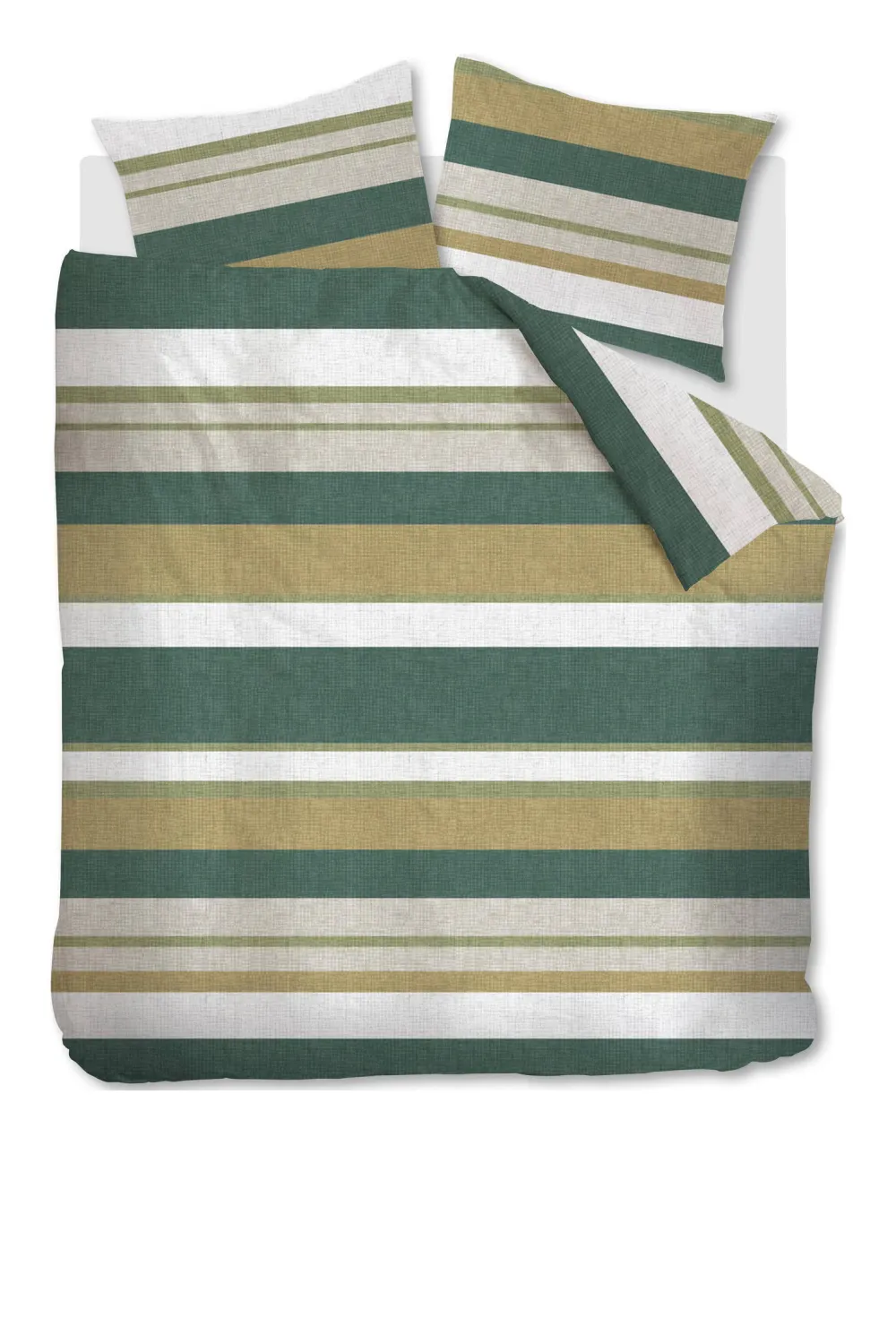 Dekbedovertrek Dani Van Ambiante Heeft Een Landelijk En Tijdloos Dessin Met Horizontale Strepen. Het Overtrek Heeft Smalle En Brede Strepen In Frisse Blauwe Kleuren. De Print Heeft Een Grove Weefselstructuur. De Kussenslopen Hebben Elk Een Ander Dessin In Dezelfde Opvallende Kleuren. Dit Geeft Het Overtrek Een Speels Effect.