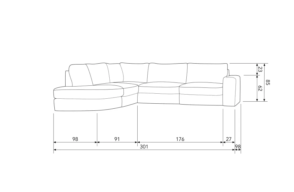 – Rugleuningbreedte: 301/147 Cm
