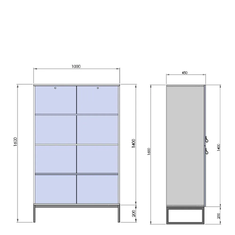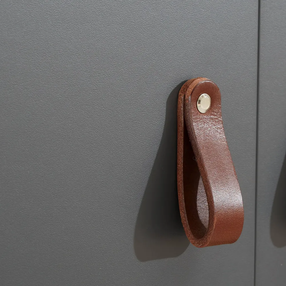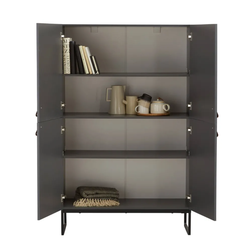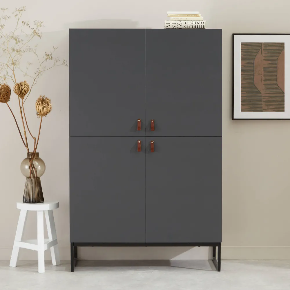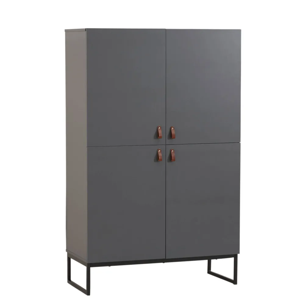 De Opbergkast Is Afgewerkt In Het Antraciet Met Een Zwart Metalen Onderstel. Elk Deurtje Is Voorzien Van Een Mooi Leren Handvat. Dit Geeft De Opbergkast Een Strakke, Minimalistische Look. Deze Opbergkast Is Ook Verkrijgbaar In De Kleur Wit.