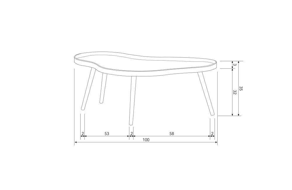 Deze Slanke Bijzettafel Heeft Een Hoogte Van 35 Cm En Is Ongeveer 100 Cm Breed En 58 Cm Diep. Het Tafelblad Beschikt Over Een Opstaande Rand Van 2 Cm Hoog. De Poten Hebben Een Hoogte Van 32 Cm En Lopen Van De Bovenzijde 3 Cm Taps Toe Naar Onderen Tot 1,5 Cm. De Bijzettafel Heeft Een Draagkracht Van 10 Kg Wanneer Gelijkmatig Verdeeld. Het Tafeltje Weegt Zelf Een Kleine 5 Kg.