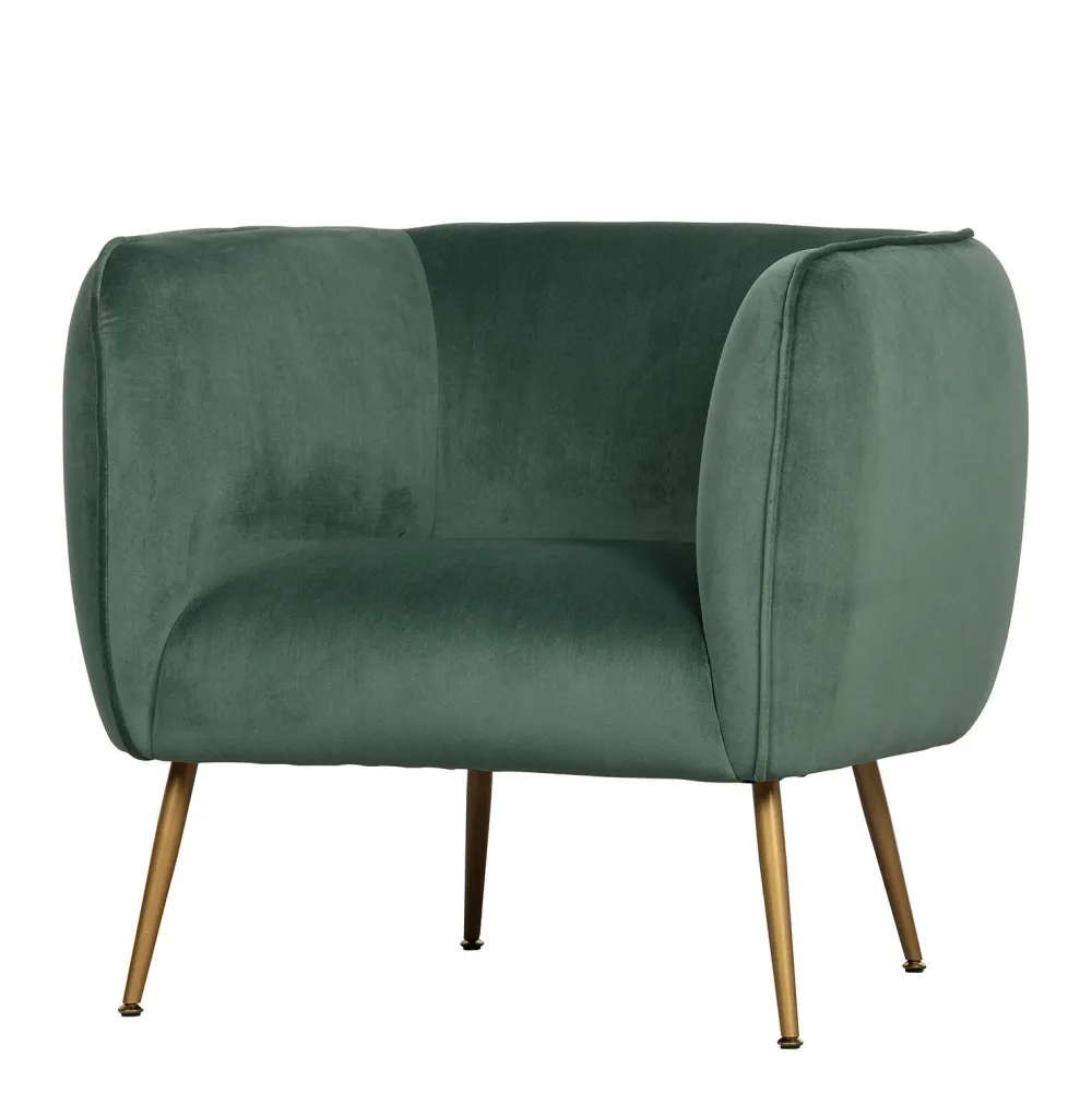 De Woood Livia Fauteuil Velvet Groen Is Een Mooie Aanwinst In Het Interieur. Deze Trendy En Stijlvolle Fauteuil Heeft Zit- En Rugkussen Gemaakt Van Pu-Schuim. De Fauteuil Is Bekleed Met Een Zacht Fluwelen Polyester Stof In De Kleur Groen. De Poten Zijn Van Metaal Gespoten In Het Goud. Deze Combinatie Geven Een Elegante Look Aan Het Fauteuil.