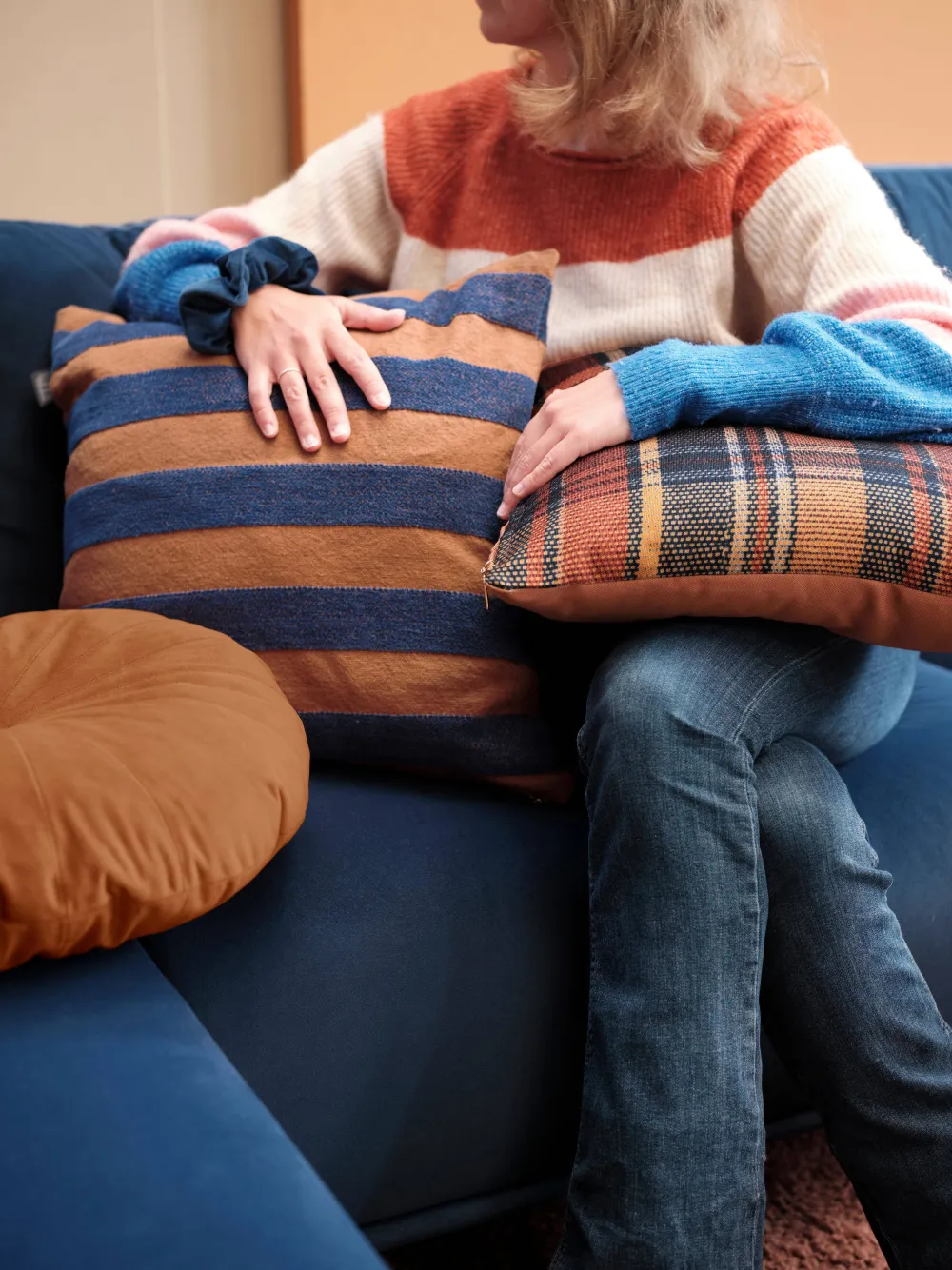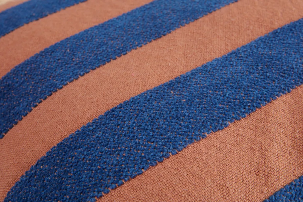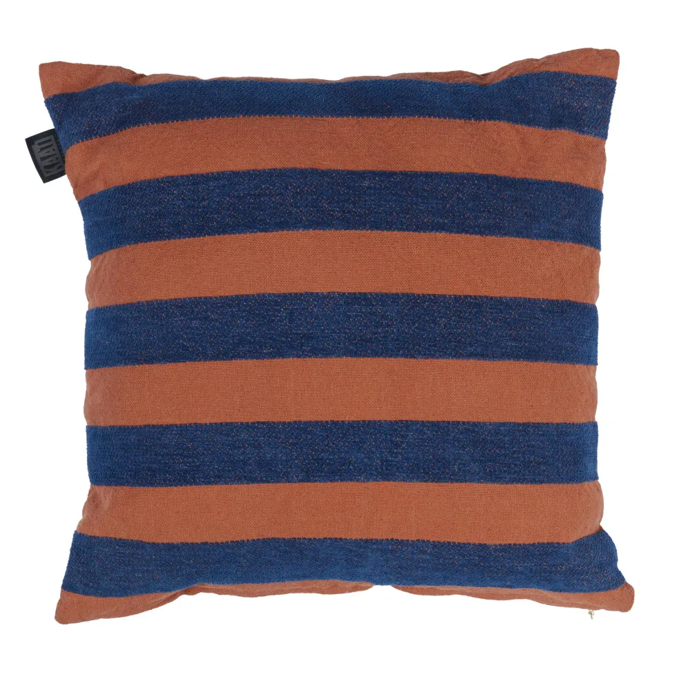 Sierkussen Nissa Van Kaat Amsterdam Heeft Brede Geweven Chenille Strepen In Blauw Op Een Terra Achtergrond. Deze Garen Zorgen Voor Een Fijne, Zachte Structuuren Een Speels Effect. En Het Maakt Niet Uit Hoe Je Het Kussen Neerlegt, De Voor- En Achterkant Zijn Namelijk Hetzelfde. Het Sierkussen Is Er In Meerdere Kleurstellingen. Sierkussen Nissa Is Gemaakt Van 100% Katoen. Het Formaat Is 45 X 45 Cm. Het Kussen Heeft Aan De Onderkant Een Ritssluiting En Wordt Geleverd Inclusief Een Veerkrachtig Polyester Binnenkussen. Leuk Detail: Het Sierkussen Heeft Een Gouden Puller Aan De Ritssluiting In De Vorm Van Een Amsterdams Grachtenpandje. Het Kussen Is Niet Geschikt Voor De Wasmachine En Droger.