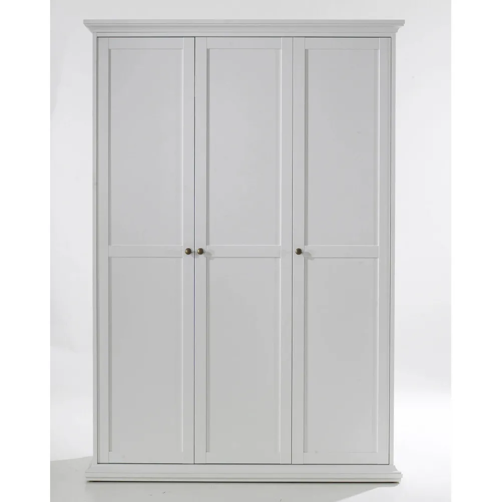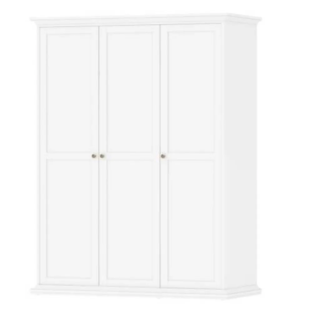 De Witte 3-Deurs Kledingkast Paris Heeft Een Landelijk, Romantische Uitstraling En Biedt Veel Ruimte Aan Je Garderobe. De Kastruimte Achter De Eerste Twee Deuren Bestaat Is Uit Een Grote Ruimte Met Roede, Om Je Kleding Aan Op Te Hangen Met Daarboven Een Legplank.