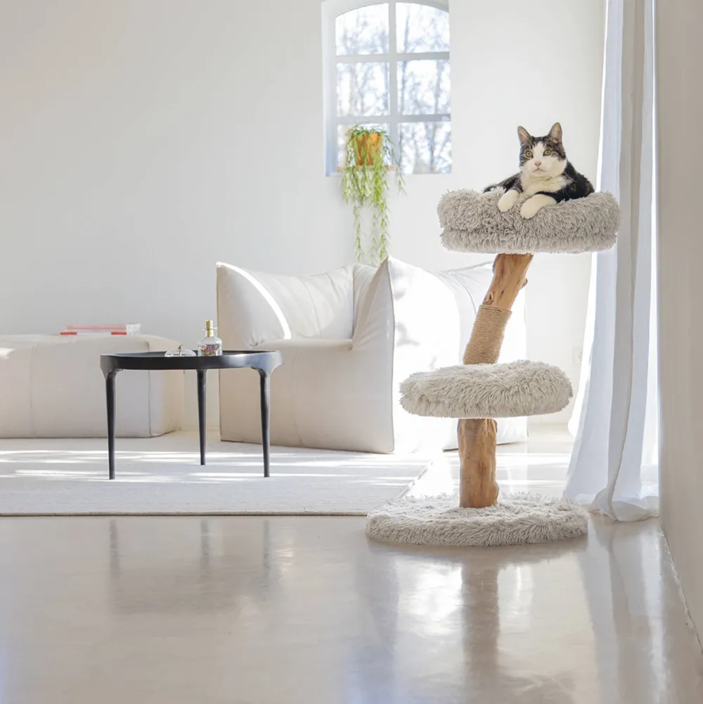 Een Kat Heeft Meerdere Krabplekken Nodig In Huis, Daar Kan De Designed By Lotte Zora Er Een Van Zijn. Deze Stijlvolle Krabpaal Is Gemaakt Van Natuurlijk Hout En Afgewerkt Met Een Zachte Pluche Stof. De Twee Ligplekken Zijn Goed Gevuld, Zodat Het Lekker Zacht Ligt Voor De Kat. De Hoezen Kunnen Er Bovendien Af Worden Gehaald En Zijn Uitwasbaar In De Wasmachine Op 30 Graden. Onder De Bodemplaat Van De Krabpalen Zitten Dopjes, Zodat De Krabpaal Minder Gemakkelijk Kan Verschuiven. De Krabpaal Is Gemaakt In Een Mooie Grijze Kleur, Die Past In Ieder Interieur! Doordat De Krabpalen Zijn Gemaakt Van Natuurlijk Hout, Is Iedere Krabboom Uniek. Hierdoor Kan De Paal Iets Afwijken Van De Afbeelding.