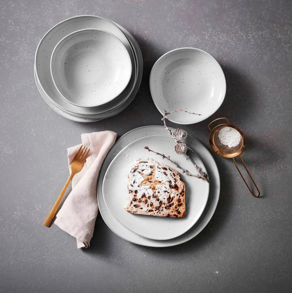Deze Stijlvolle Gebarsbordjes Zijn Van Het Merk Wehkamp Home. De Borden Zijn Gemaakt Van Keramiek En Hebben Een Lichtgrijze Kleur Met Een All Over Stipjes Effect. Door Het Unieke Ontwerp En De Organische Vormen Zijn De Borden Echte Blikvangers Voor Op Tafel. Combineer De Dinerborden Met De Andere Borden En Kommen Van Wehkamp Home Voor Een In Stijl Gedekte Tafel!