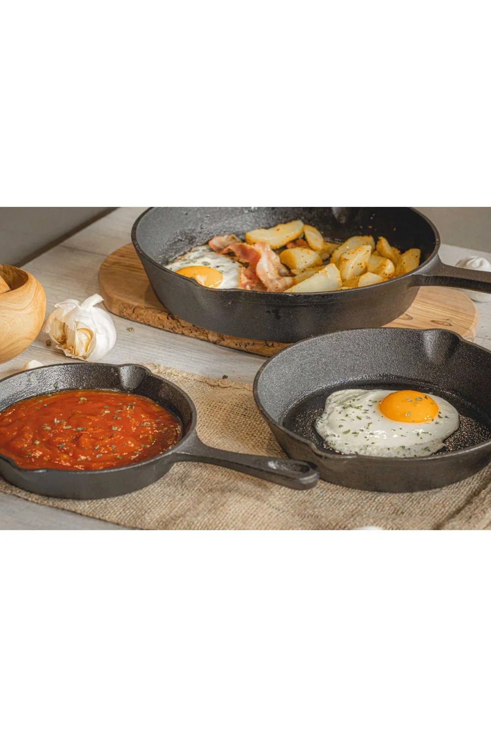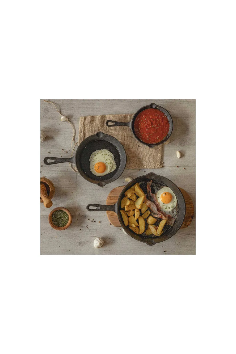 Met Deze Gietijzeren Koekenpannen Van Blackwell Ben Je Voorbereid Op Elke Actie In De Keuken! De Pannenset Bestaat Uit 3 Koekenpannen In Verschillende Formaten. Dankzij Het Gietijzer Van Blackwell Zijn De Pannen Niet Kapot Te Krijgen. Weet Je Wat Ook Handig Is? De Twee Schenktuiten Aan De Zijkanten, Hierdoor Heb Je Geen Opscheplepel Meer Nodig!