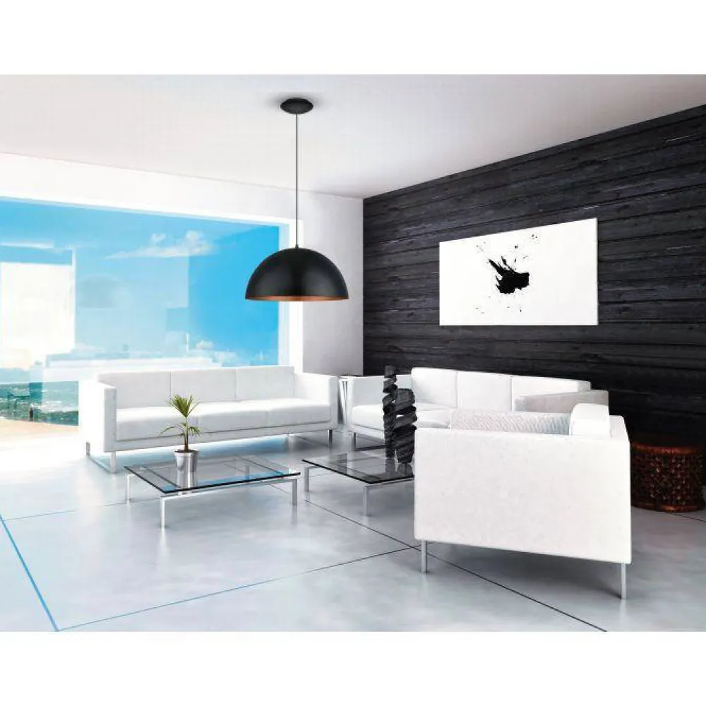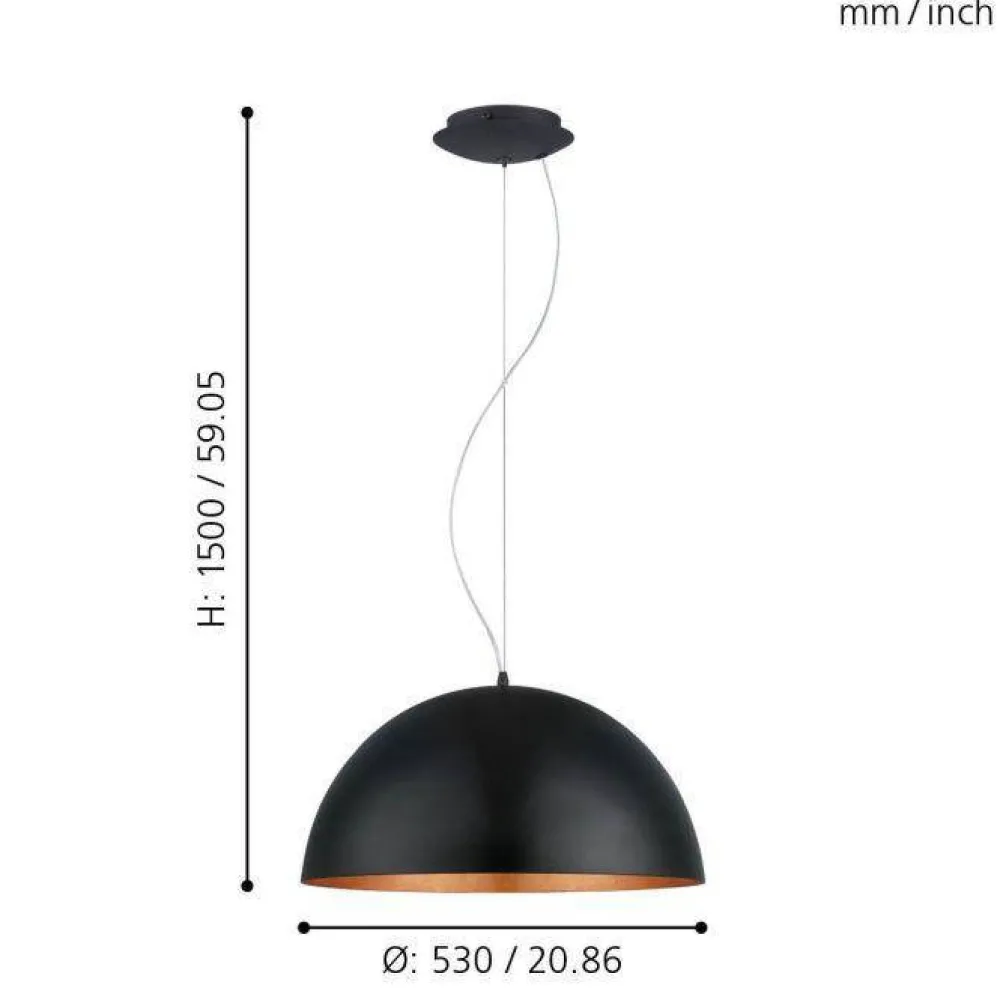 De Perfecte Harmonie Tussen Industrieel En Modern Dat Is De Adembenemende Mogano 1 Hanglamp Van Eglo. Een Design Waarbij Een Strakke Zwarte Buitenkant En Een Koperen Binnenkant Moeiteloos Samenkomen. De Gestroomlijnde Kap Geeft De Mogano 1 Een Eigentijds En Minimalistisch Karakter. Met Een Diameter Van 53 Cm Heeft De Mogano 1 Een Indrukwekkende Aanwezigheid Zonder Overweldigend Te Zijn. Plaats Hem Boven Je Eettafel Of In Het Midden Van De Kamer Om Een Echt Statement Te Maken. Laat Het Prachtige Licht Van Deze Lamp Schijnen En Geniet Van De Unieke Sfeer Die Deze Lamp Creeert.