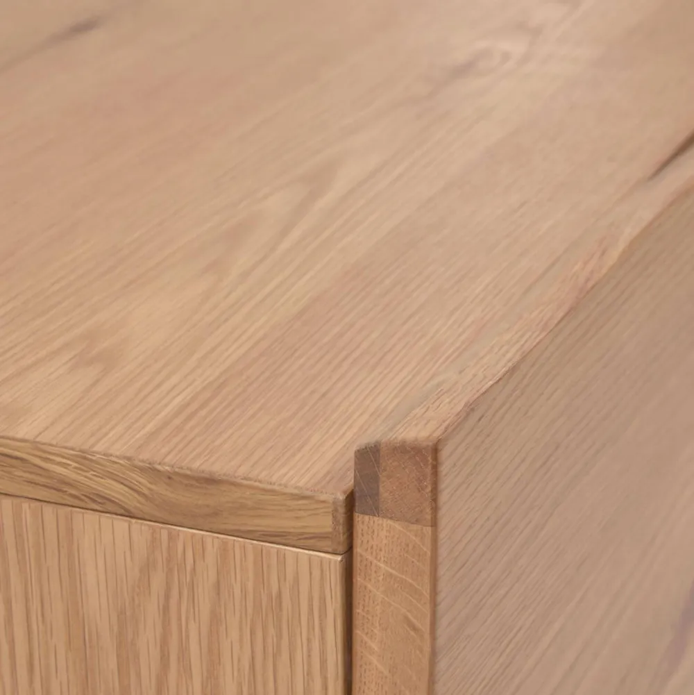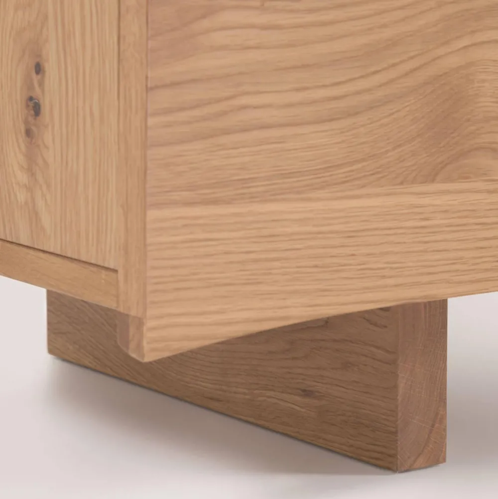Tv-Meubel Met Vier Deuren In Eikenfineer Met Een Natuurlijke Afwerking. Deuren Met Massief Eiken Randen Met Een Onregelmatige Snede. Onthult Unieke Tonen, Vormen En Nerven En Waarvan De Gebogen Randen Organische, Exclusieve Vormen Creeren. Zachtsluitende Scharnieren En Verstelbare Poten Om Stabiliteit Te Garanderen. Een Kave Cares Design: Met Een Interne Houten Structuur Gemaakt Met Emissievrije Lijmen Om De Planeet Vrij Te Houden Van Vervuiling. Dit Stuk Is Exclusief Ontworpen En Gemaakt Door Het Kave Home-Team. Combineer Het Met De Rest Van De Collectie Om De Look Compleet Te Maken.