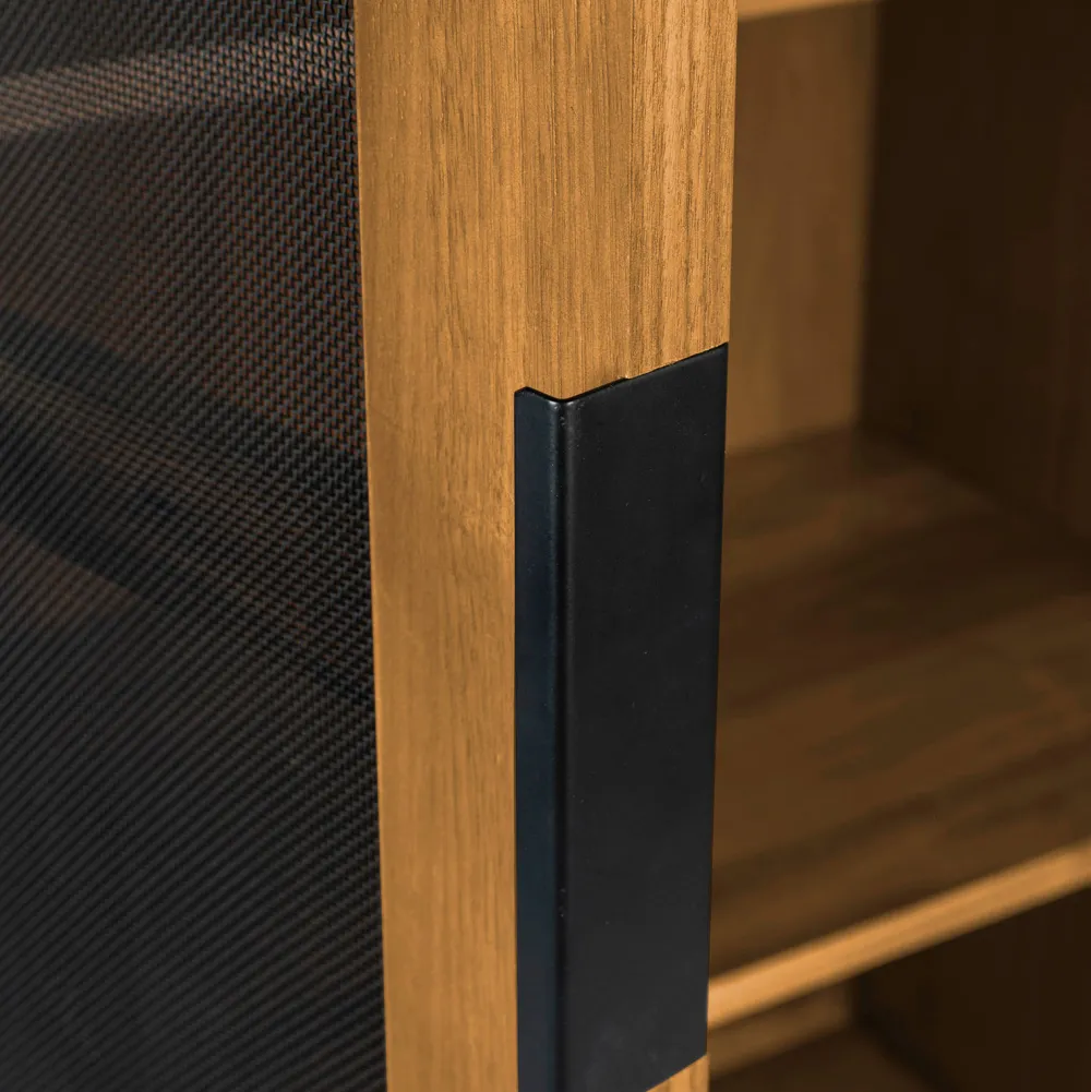 Deze Prachtige Vitrinekast Is Van Het Merk Zuiver. De Vitrinekast Heeft Een Mooie Afwerking Van Eikenfineer En Staat Op Strakke Stalen Poten. Het Meest Uniek Aan Dit Dressoir Zijn De Deuren. De Deuren Zijn Afgewerkt Met Fijn Metalen Gaas, Hierdoor Zijn De Deuren Een Klein Beetje Transparant. Vitrinekast Hardy Staat Prachtig In Ieder Interieur En Zal Sowieso De Eyecatcher In Jouw Woonkamer Worden.