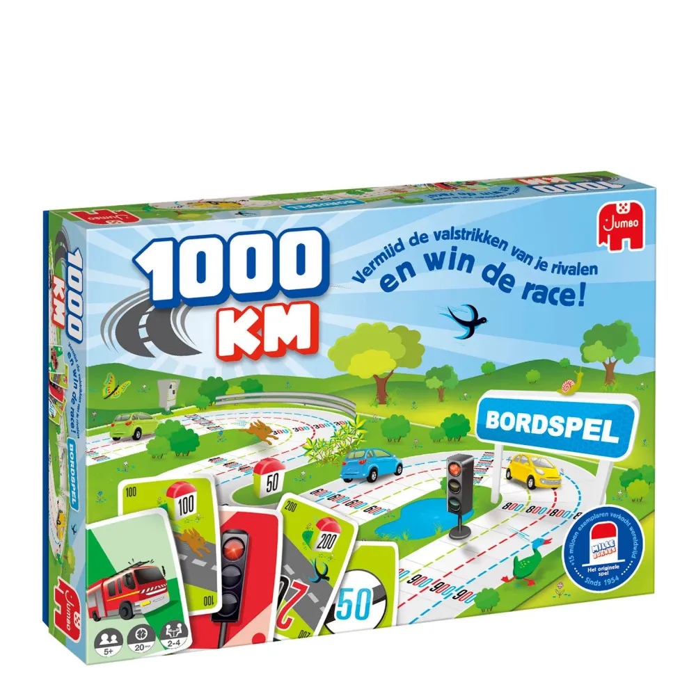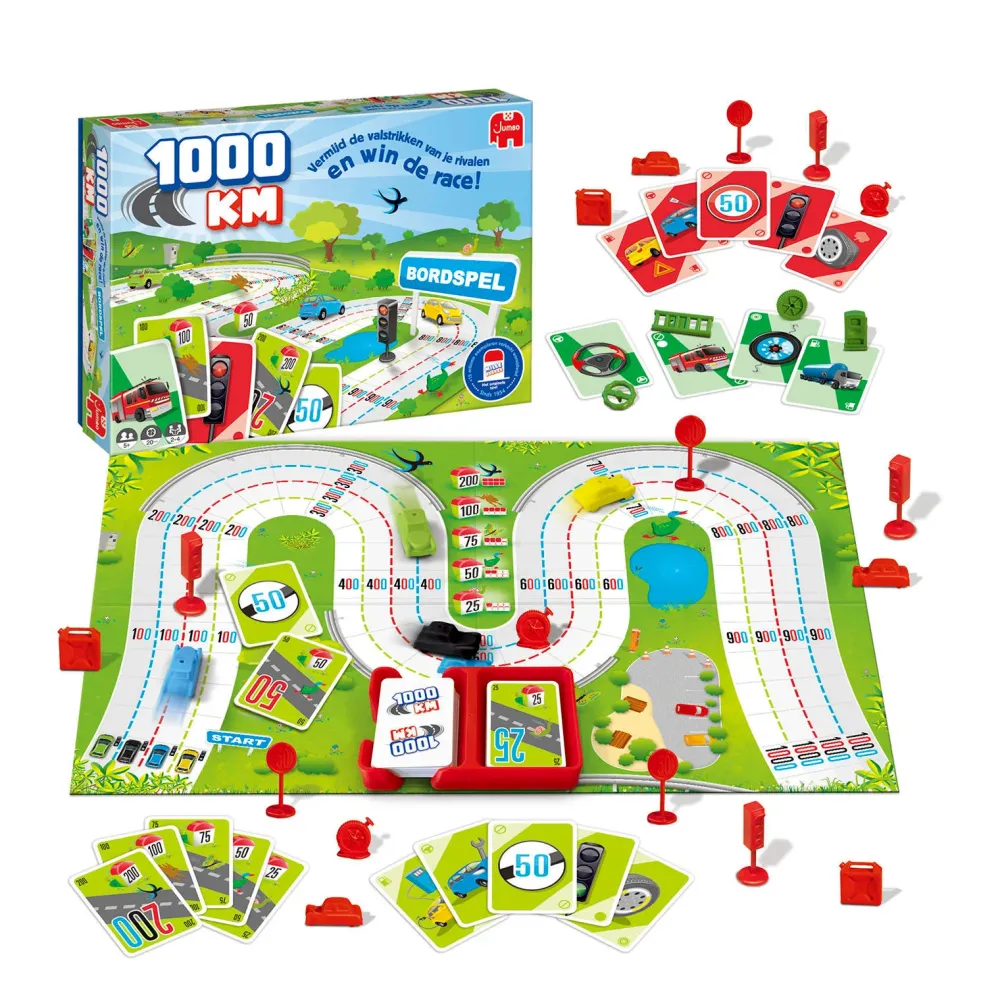 Bereid Je Voor Op Een Spannende Race Met Dit Gezelschapsspel Voor Kinderen 1000 Km! 1000 Km Is Een Klassiek Familiespel Uit 1954 Maar Nu Opnieuw Uitgebracht! Dit Tijdloze Bordspel Voor Het Hele Gezin Zit Vol Onverwachte Wendingen. Je Bent Een Ervaren Coureur Die 1000 Kilometer Moet Afleggen. Houdt Onderweg De Stoplichten En Snelheidslimieten In De Gaten. Ook Proberen Jouw Rivalen Je Dwars Te Bomen! Ga Jij De Finish Kunnen Halen? Vermijd De Valstrikken Van Je Rivalen En Win De Race! Door De Simpele Spelregels Zorgt Dit Spel Voor Eindeloos Speelplezier Voor Het Hele Gezin. De Originele Naam Van Dit Spel Is “Mille Bornes”. Het Werd In 1954 In Frankrijk Gecreeerd Door Edmond Dujardin En Werd Al Snel Erg Populair. Sindsdien Zijn Er Wereldwijd Meer Dan 15 Miljoen Exemplaren Verkocht.