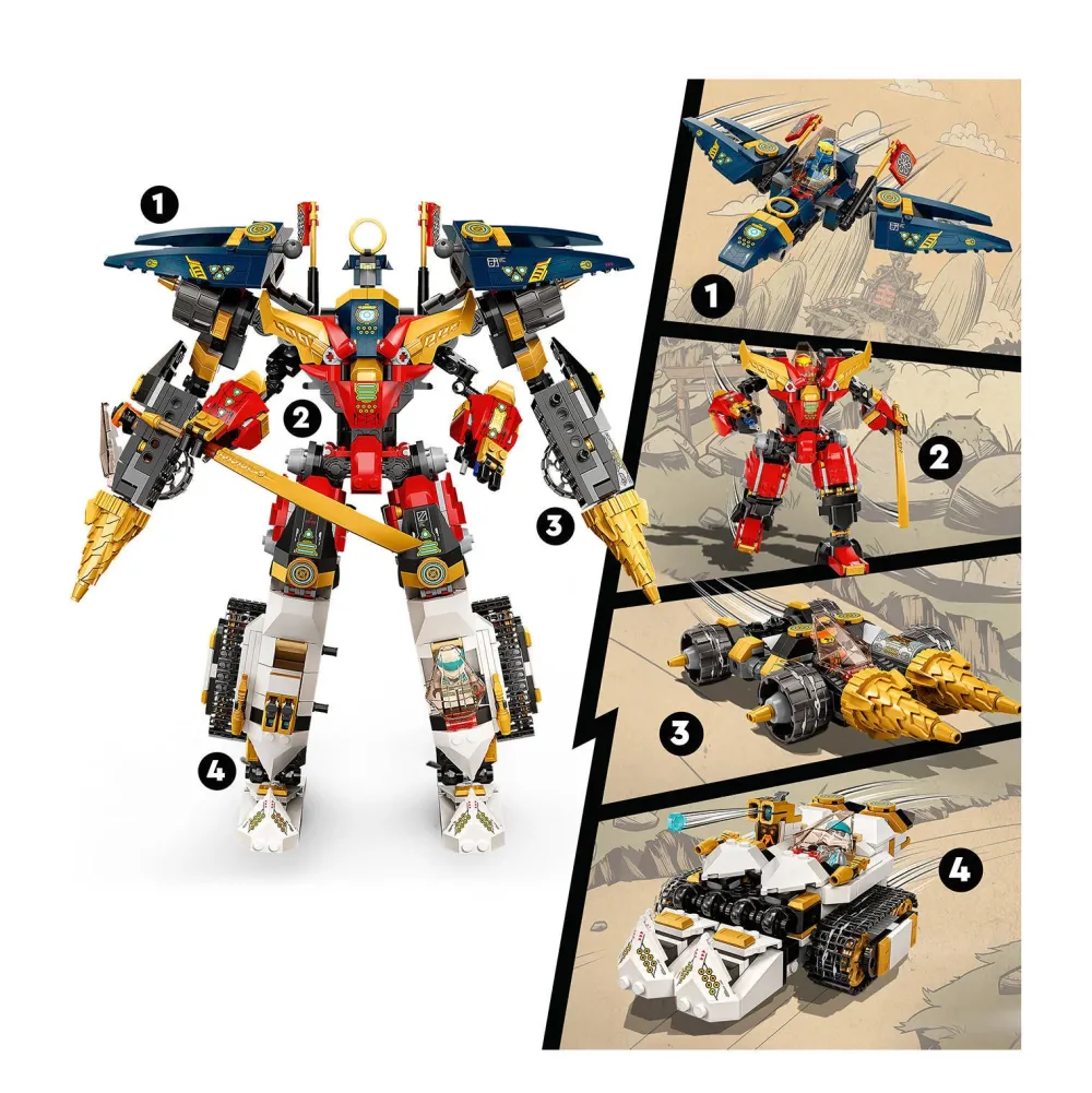 Kinderen Vanaf 9 Jaar Zullen Het Fantastisch Vinden Om Urenlange Ninjaverhalen Vol Actie Na Te Spelen Met Deze Ninja Ultra-Combomecha (71765), Een 4-In-1 Voertuigspeelset. Dit Is De Ultieme Vechtmachine Die Bestaat Uit Een Mecha, Auto, Tank En Vliegtuig, Waarmee Kinderen Ook Afzonderlijk Kunnen Spelen.