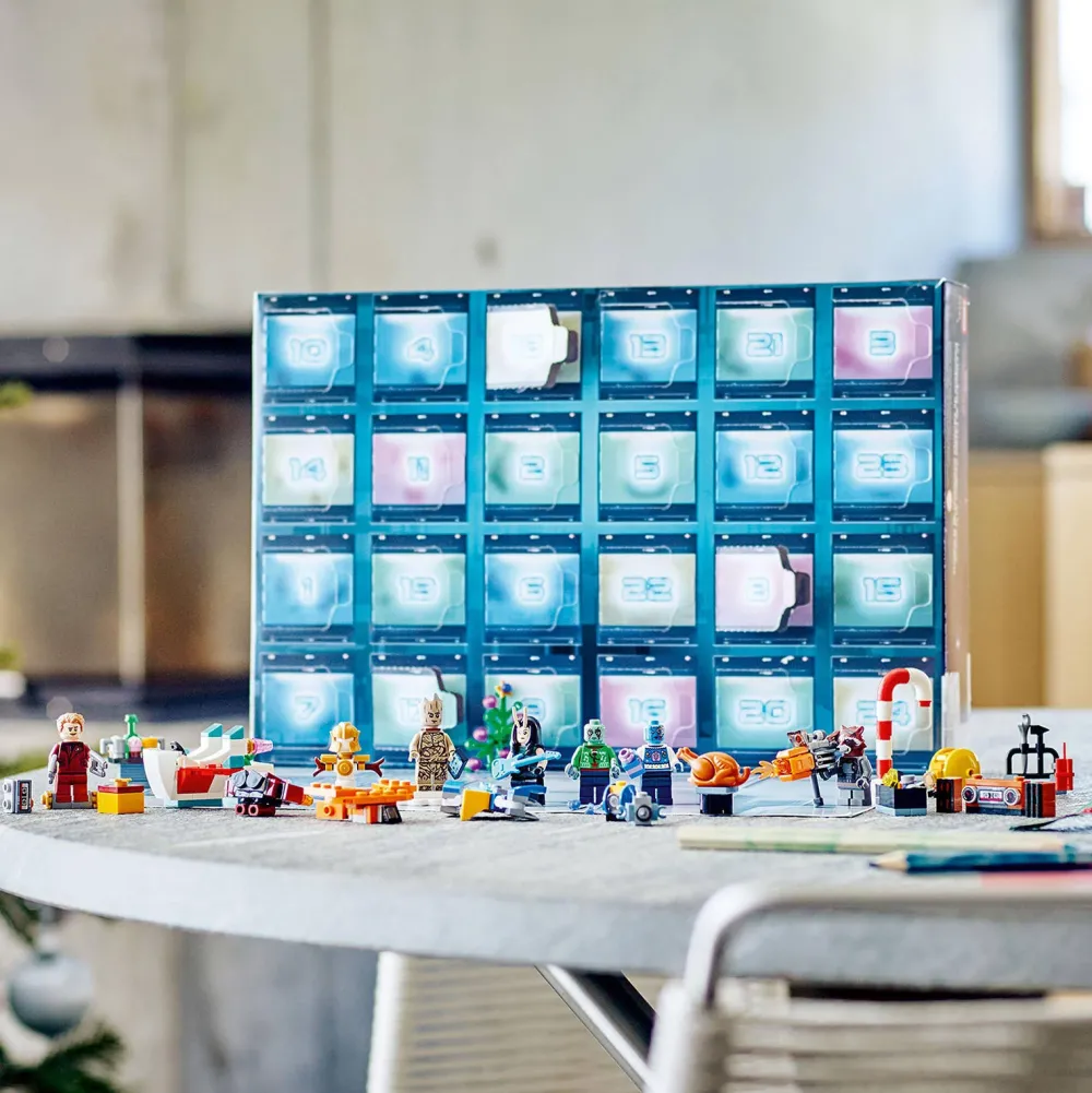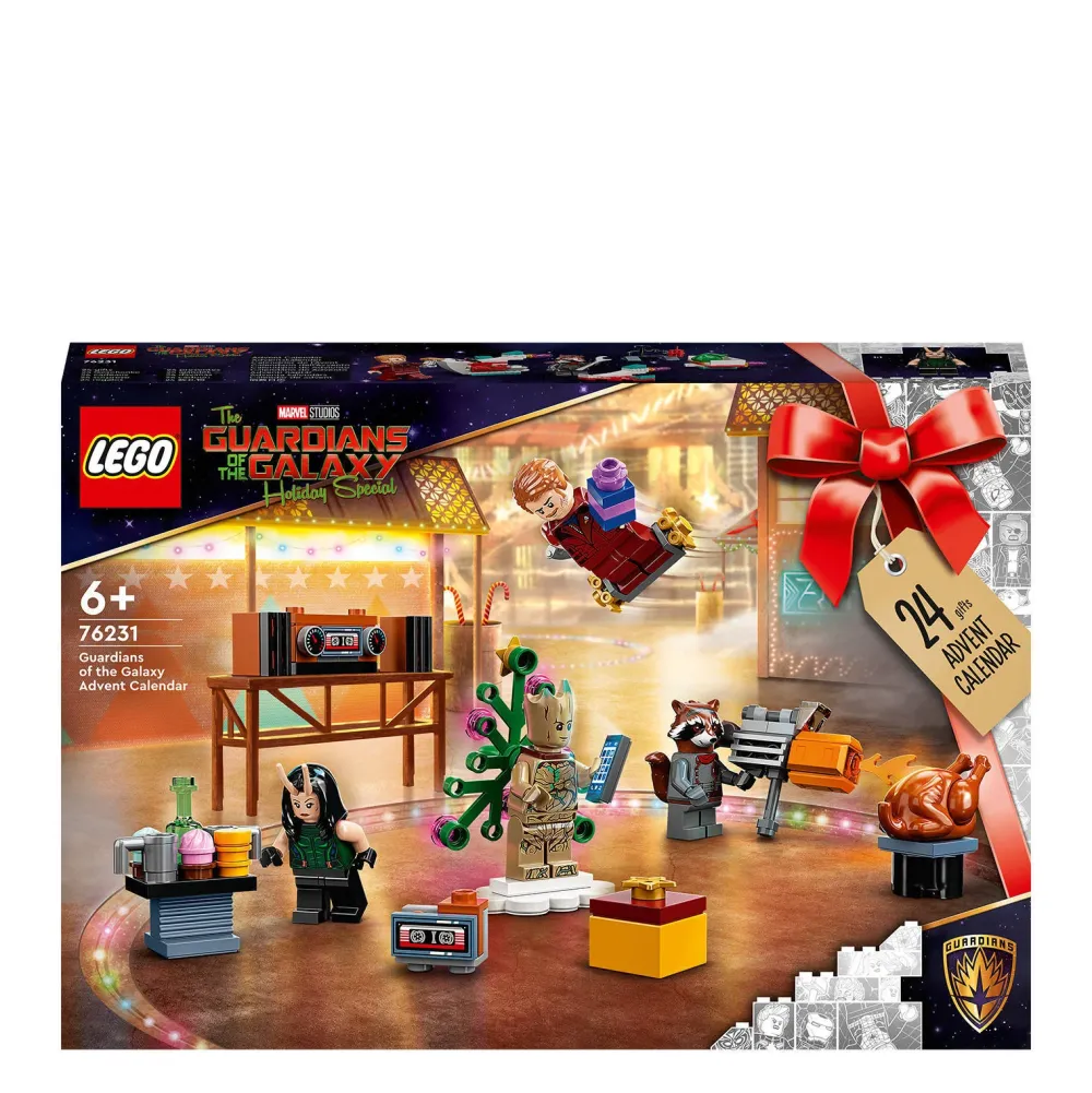 Verras Marvel Fans Van 6 Jaar En Ouder Met De Lego Marvel Studios’ Guardians Of The Galaxy Adventkalender (76231). Het Plezier Begint Al Op 1 December En Duurt Voort Tot Aan Kerstmis. Achter Elk Van De 24 Vakjes Van Deze Adventskalender Vinden Kinderen Iedere Dag Een Cadeautje In Aanloop Naar Kerst. Er Zijn 6 Minifiguren, Waaronder Star-Lord, Rocket, Groot En Mantis, Plus Minimodellen En Accessoires Die Kinderen Zullen Herkennen Uit Het Marvel Cinematic Universe En De Disney+ Tv-Series. De Adventkalender Bevat Minimodellen Van Een Drone, Een Blaster, Het Ruimteschip Van De Guardians, Een Sneeuwpop Met Het Pantser Van Thanos En Meer. Naarmate Kerst Dichterbij Komt, Kunnen Kinderen Het Constructie Speelgoed Combineren Voor Eindeloze Fantasierijke Superheldenavonturen. Met Deze Marvel Adventskalender, Vol Met Speelmogelijkheden En Verrassingen, Zal De Magie Het Hele Jaar Voortduren! Het Is Een Ideaal Pre-Kerstcadeau, Voor Fans Van Alle Leeftijden Vanaf 6 Jaar. Afmetingen: Ca. 26 Cm Hoog, 38 Cm Breed En 7 Cm Diep Bevat 268 Onderdelen