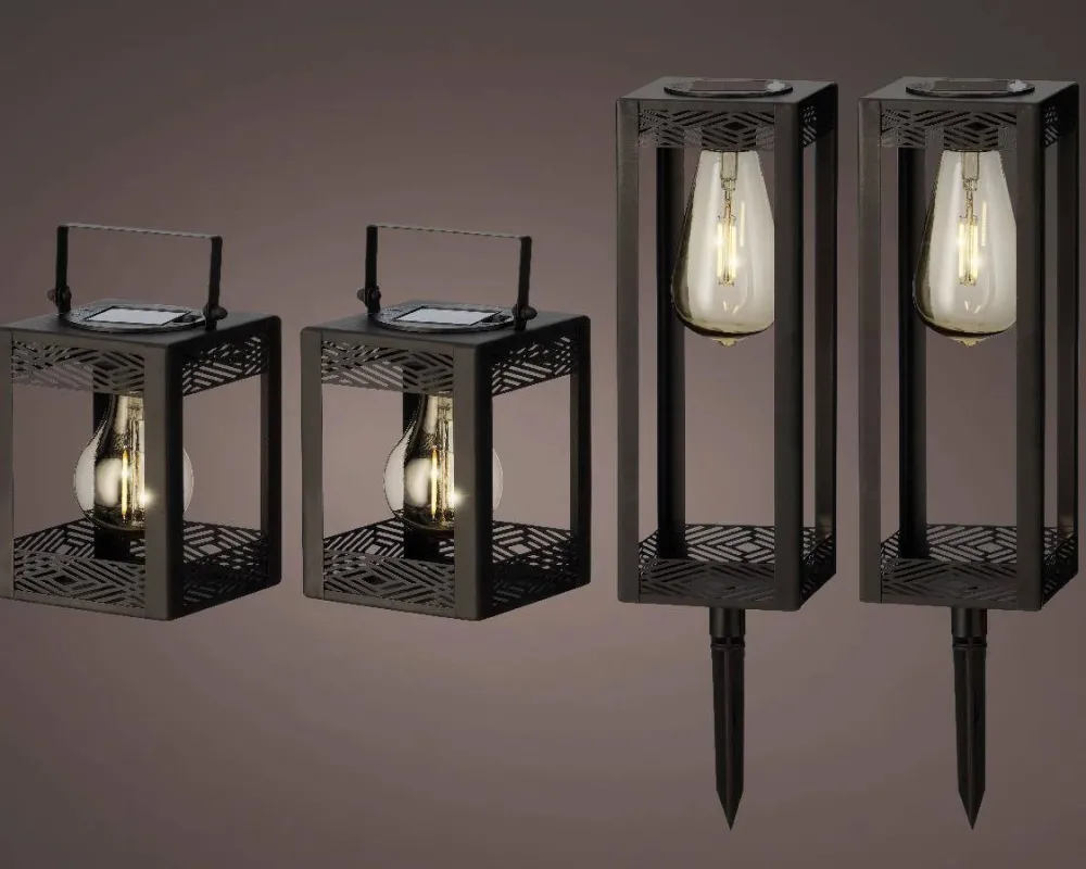 Solar Light Metaal Steady Mix 2 X 10X10X28Cm – 2 X Lantern 10X10X14Cm Aantal Led:1 Aantal Batterijen:1 Batterij Capaciteit:200 Mah Batterij Voltage:1.2 V Functies:Steady Keurmerk:Ukca Keurmerk:Ce Led Kleur:Warm White Led Type:Filament Bulb Met Handvat:Ja Met Schakelaar:Ja Solar Paneel:Amorf Solar Paneel Milliampere:25 Solar Paneel Voltage:2 V Type Batterij:Ni-Mh Aaa Vervangbare Batterij:Ja Werkuren:6 H Output Licht:1 Lm