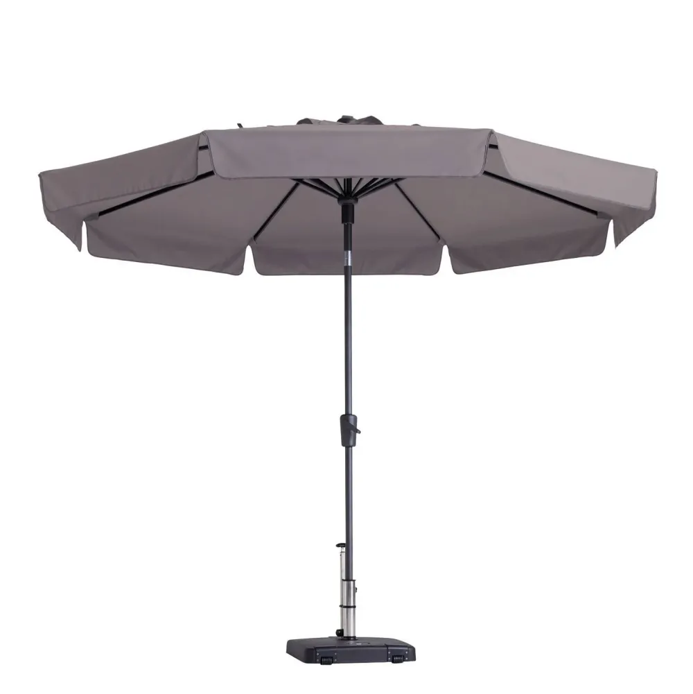 De Taupe Kleurige Parasol Heeft Een Diamter Van 300 Cm En Is Mede Door Het Kniksysteem Geschikt Voor De Meeste Tuinen En Terrassen. Het Volant Aan De Parasol Zorgt Voor Extra Schaduw, Met Name Als De Zon Wat Lager Hangt.
