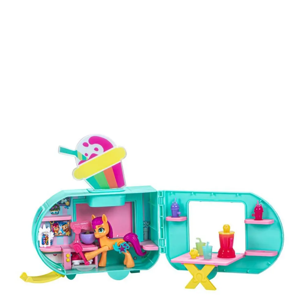Serveer Wat Magie Met De 2-In-1 Speelset Sunny Starscout Met Smoothie Kraam Van My Little Pony. Sunny Starscout Is Een Avontuurlijke Aardpony Die Zoete Lekkernijen Maakt In Haar Mobiele Smoothietruck In De Serie My Little Pony: Make Your Mark. Deze My Little Pony-Set Bevat Een Beweegbare Ponyfiguur Van 7,5 Cm Die Kinderen Op Verschillende Manieren Kunnen Opstellen. Deze Foodtruckspeelset Voor Kinderen Gaat Open En Wordt Een Keuken Met Namaaketen Om Mee Te Spelen! Stel Je Voor Dat Je Namaakcupcakes Maakt In De Oven Of Namaaksmoothies Met Het Blenderaccessoire. Druk De Hoef Van Het Sunny Starscout-Speelgoed Op De Hendel Van De Truck Om De Neonreclame Aan Te Steken En Het Raam Te Openen. Open Vervolgens De Truck Om De Speelkeuken Aan De Binnenkant Te Ontdekken. De Set Bevat 15 Accessoires Waarvan Je Sommige Kunt Vastmaken Aan Sunny’S Hoef. De Foodtruck, Speelsets Voor Kinderen En Kleine Poppen Van My Little Pony Zijn Ideaal Als Verjaardagsgeschenk Voor Meisjes En Jongens Vanaf 5 Jaar. (Extra Speelgoeditems Zijn Afzonderlijk Verkrijgbaar. Zolang De Voorraad Strekt.)