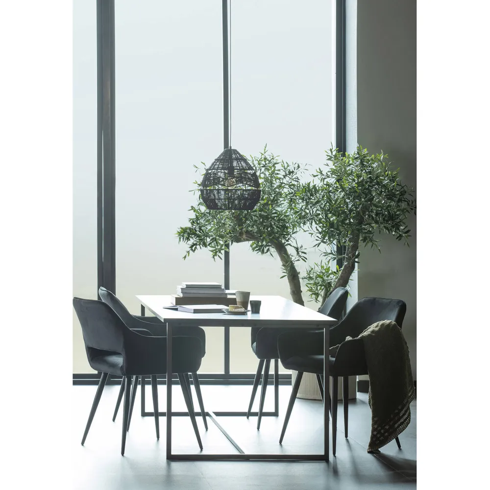 De Eigentijdse Woood Eetkamerstoel Jelle In Fluweel Gestoffeerd In De Kleur Zwart Heeft Een Opvallend Gevormde Zitting. Dit Is Niet Alleen Fraai Van Uiterlijk, Maar De Stoel Zit Ook Heerlijk. De Afmetingen Zijn (Hxbxd): 80X60X57 Cm. De Zithoogte Is 49 Cm, Zitdiepte 45 Cm En Zitbreedte 42 Cm. De Comfortabele Armleggers (Hoogte Van De Vloer Gemeten Tot Bovenkant Armlegger 65 Cm) Verhogen Het Zitcomfort. Deze Eigentijdse Eetkamerstoel Jelle Past In Elke Woonstijl. Met Zijn Fraaie Vormgeving En Zwart Gelakte Metalen Onderstel Is Deze Stoel Helemaal Van Nu.