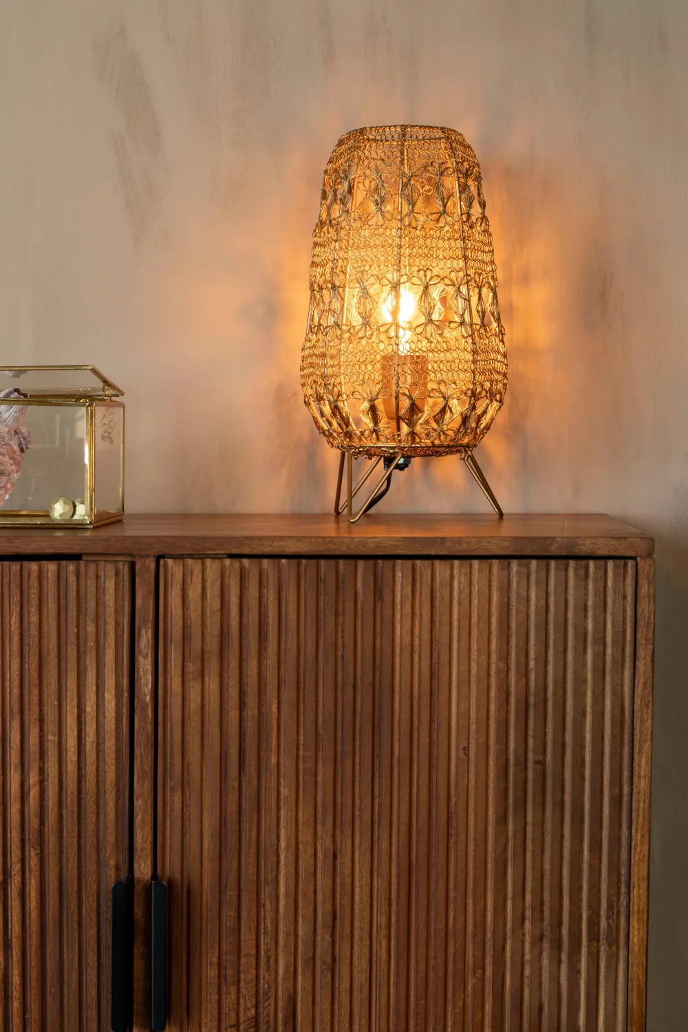 Deze Tafellamp Is Met De Hand Gevlochten Van Metaaldraad.