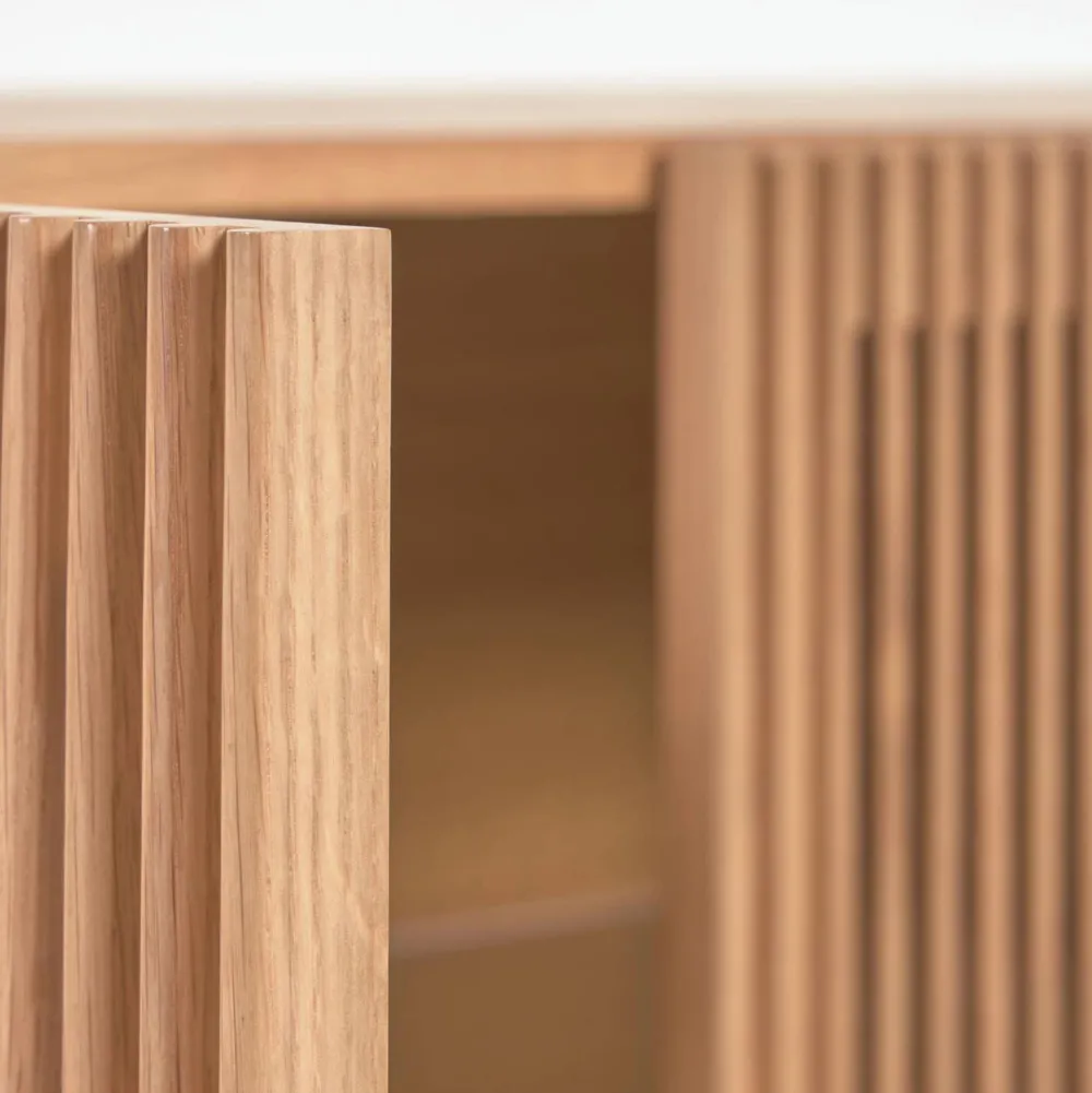 Beyla, Ontworpen Door Het Team Van Kave Home, Combineert De Natuurlijke Essentie Van Eikenhout Met Originele Verticale Houten Latten Op De Deuren Om Een Spel Van Licht En Schaduw Te Creeren. En Natuurlijk Is Het Gemaakt Met De Aandacht Voor Detail Di