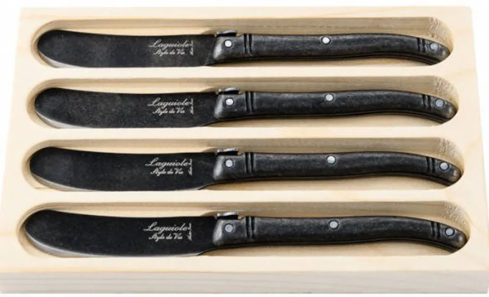 Uw Ontbijt Verdient Een Mooi Opgemaakte Tafel. Daarvoor Zijn Deze Black Stonewash Botermessen Van Laguiole De Ideale Aanvulling. De Stoere Botermessen Zijn Gemaakt Van Roestvrij Staal En Zijn Vaatwasserbestendig. Het Lemmet Is Glad Geslepen En Heeft Een Afgeronde Punt Zodat U Niet Uw Brood Scheurt Of Beschadigt. Uiteraard Zijn De Botermessen Van Laguiole Ook Zeer Geschikt Bij De Borrelhapjes Voor Het Smeren Van Toastjes.